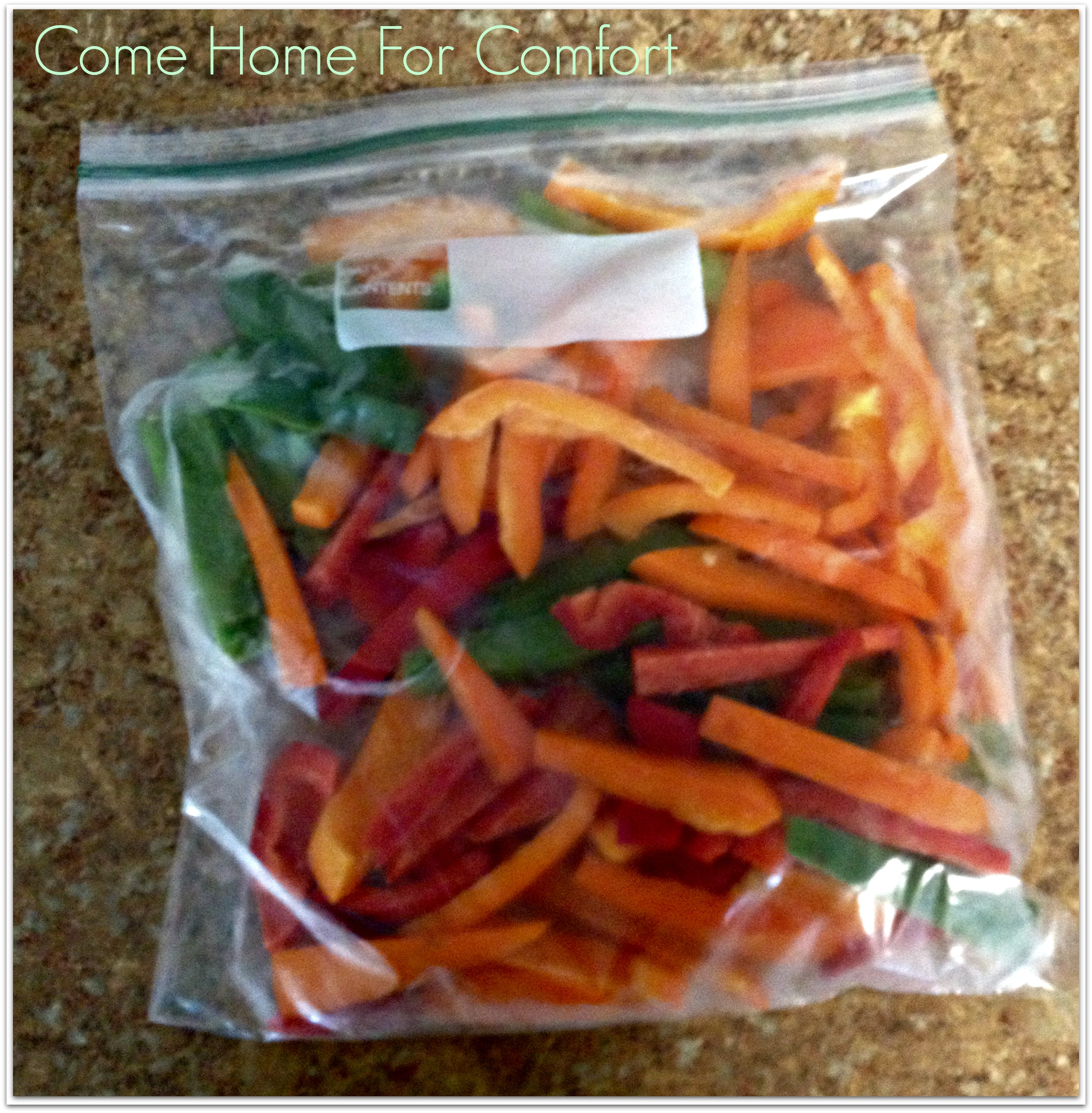 I keep a container in my freezer, and after dinner, the left over little bits of veggies, goes into the freezer. When I’m ready to make soup, it’s there all ready for the pot!