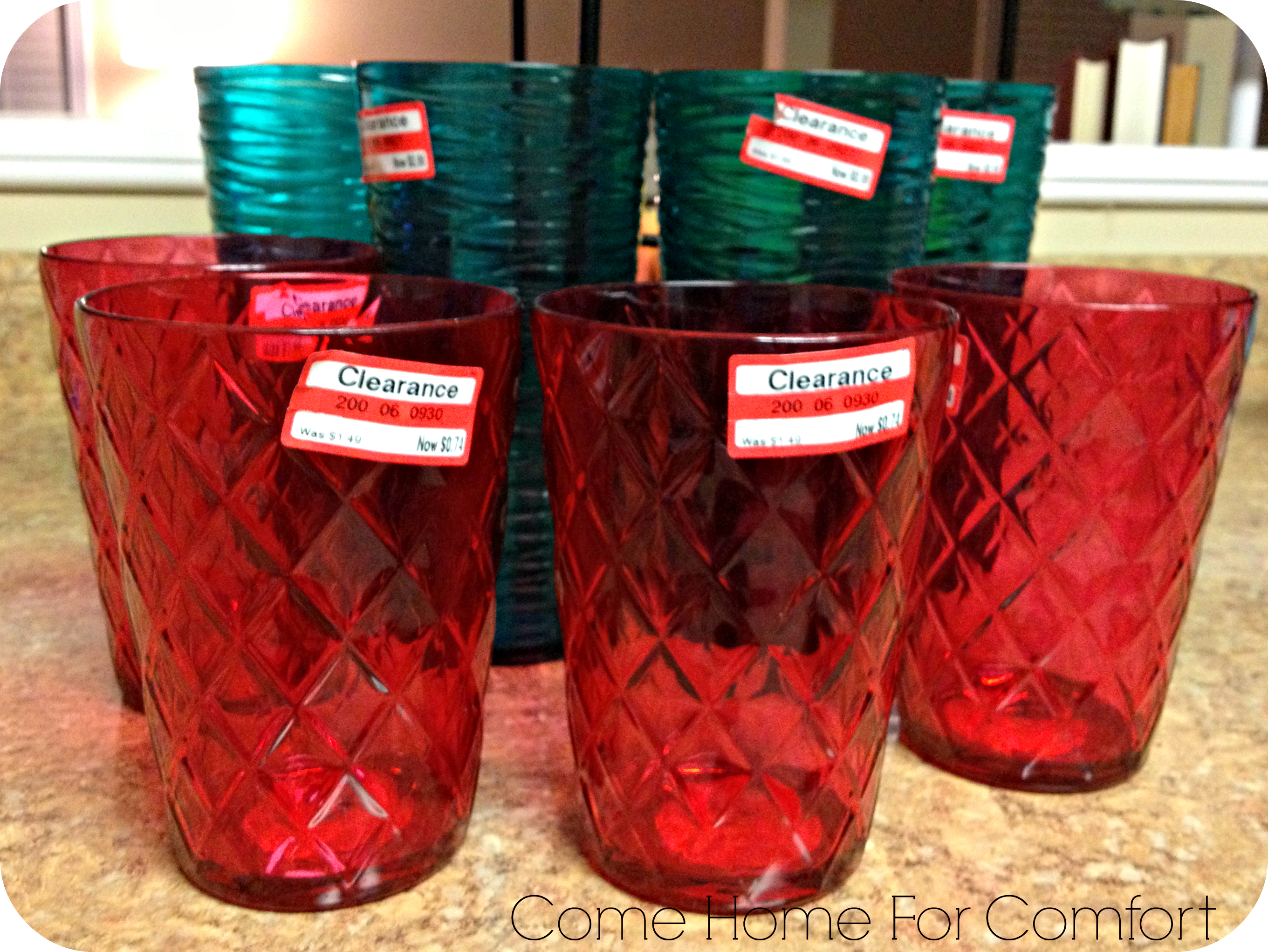 Our hunting shopping trip ended at Target. I love their clearance deals, but hold out for 50% or higher until I am willing to buy something. I found these lovely tumblers in the summer clearance, all priced under $1!