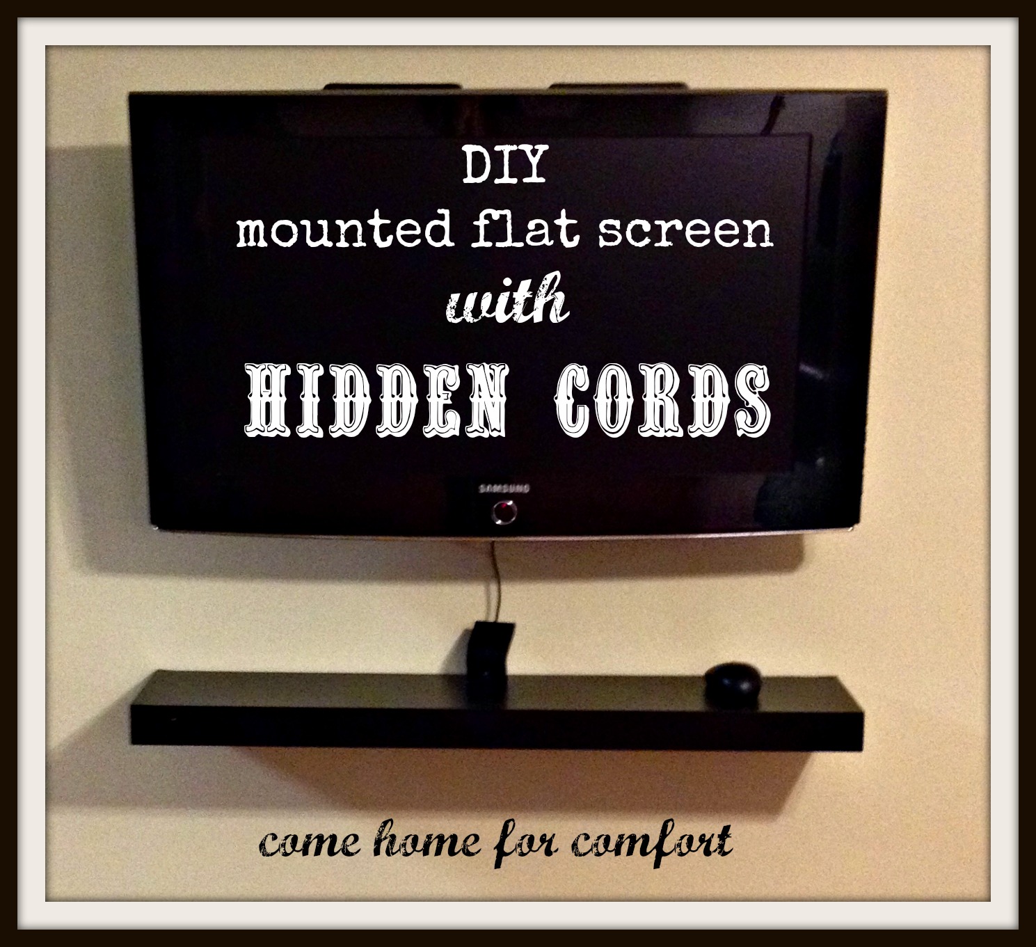 We have a wonderful flat screen TV (as do many, many Americans) that has been mounted to our living room wall wherever we’ve lived for the past three years. No woman I know likes the look of those fat cords hanging down the wall…but our TV also has a computer, DVD player, mouse and two hard drives attached to it. It makes for incredible TV viewing options, but it makes an ugly mess. I was careful never to take pictures near the TV because it looked so messy…but here’s one peek from Christmas, where an unfortunate glimpse of the TV was captured ….