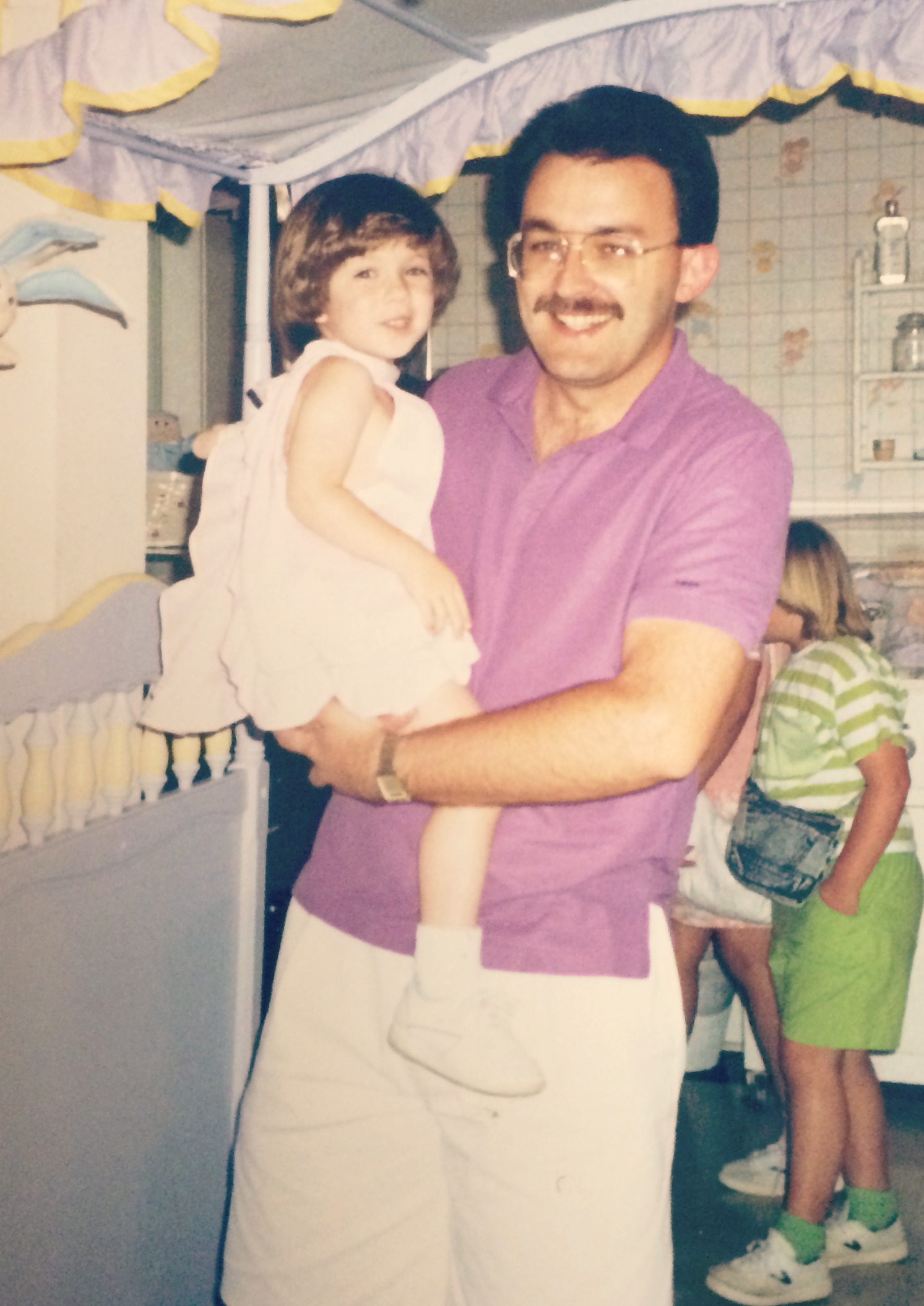 Sadly, I don’t have any pictures of the pajama runs…so here’s a picture of Dad carrying me through Babyland General Hospital (where all the Cabbage Patch Kids are born!). He was a good sport through all those years of raising girls!