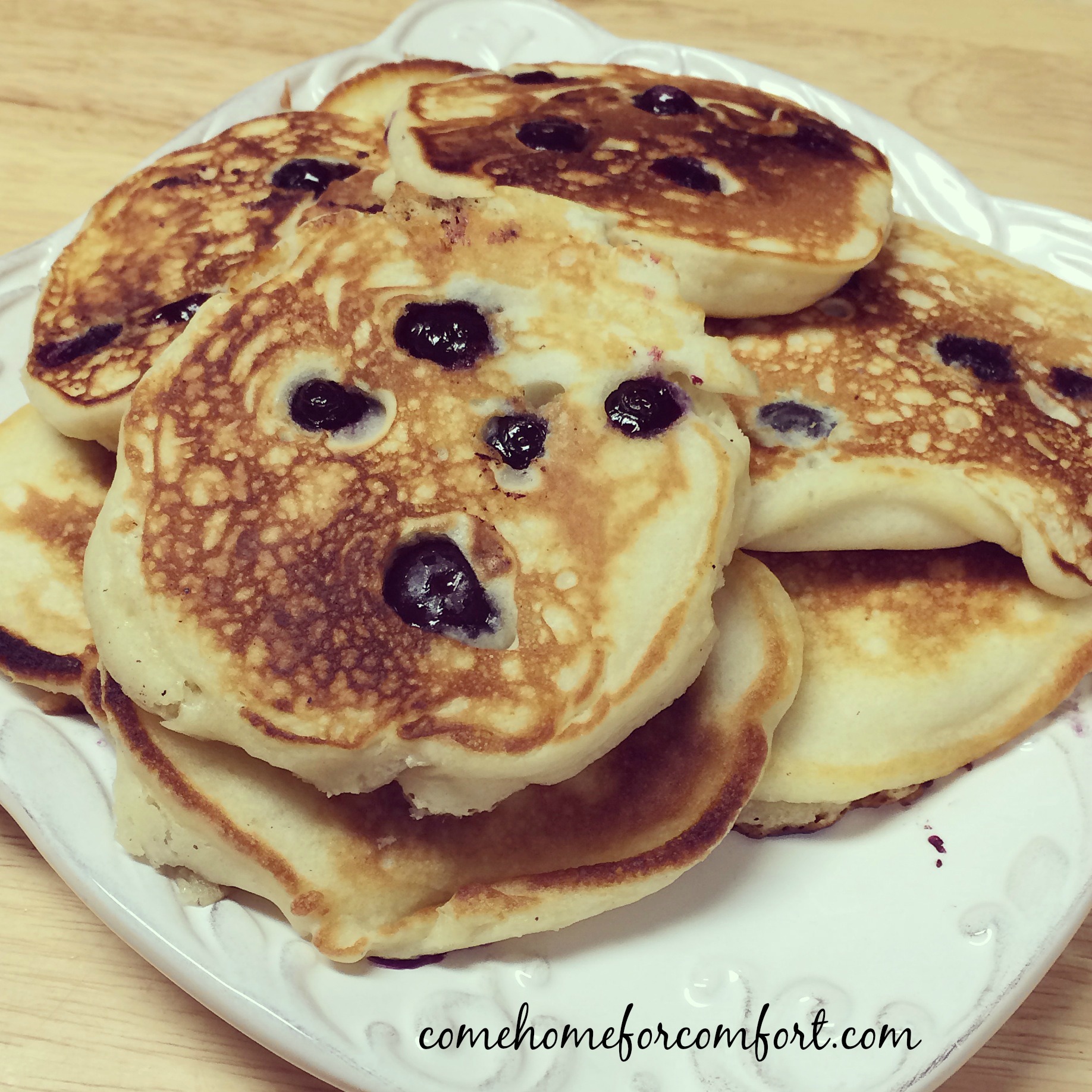 I’ve been on such a breakfast kick this summer! As you’ll see below, we enjoyed both the waffles I made last week as well as a batch of homemade blueberry pancakes for breakfast. The mornings have been unusually cool here in South Carolina, and I guess my longing for fall and winter makes me crave those comfort foods!