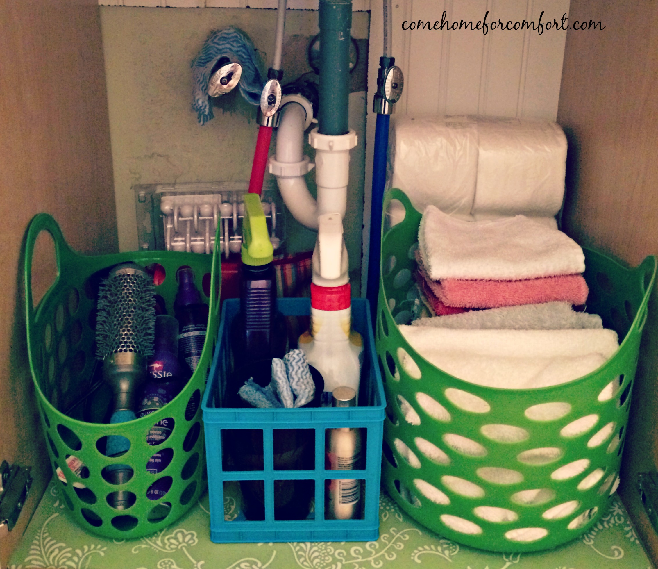 The bathroom could easily be considered a high-traffic area. It’s the one room that anyone who spends any time in your home will likely visit. That makes it an important area to keep organized! The area under the sink can be really tricky to organize – if for no other reason than the pipes that make shelving nearly impossible.