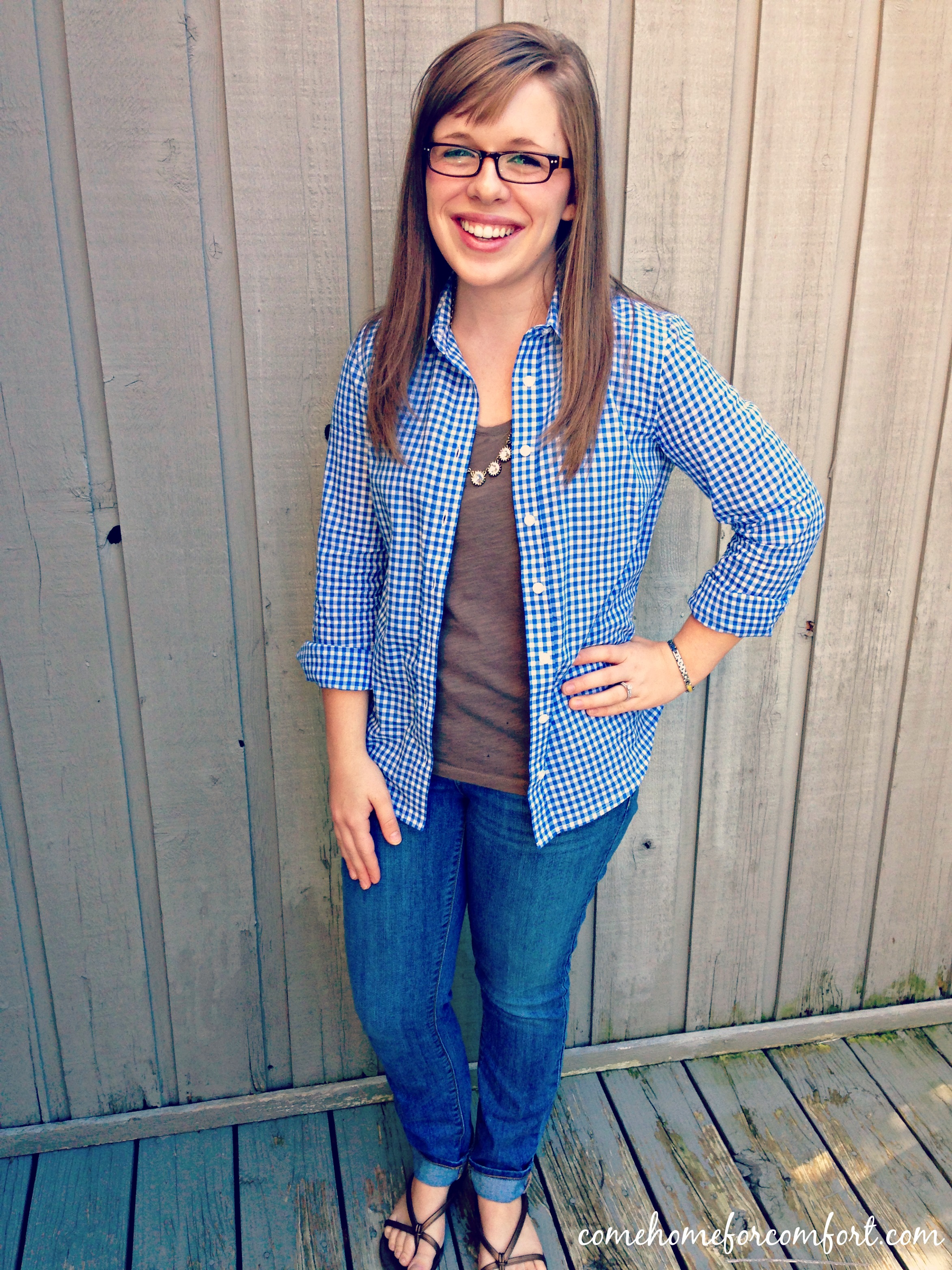 Guess who is visiting my blog today? It’s my sister, Alli! I know many of you miss her blog as much as I do, so I asked her to send me a picture of something cute she wore this week. She sent me this one – a perfect casual summer-to-fall transition outfit!