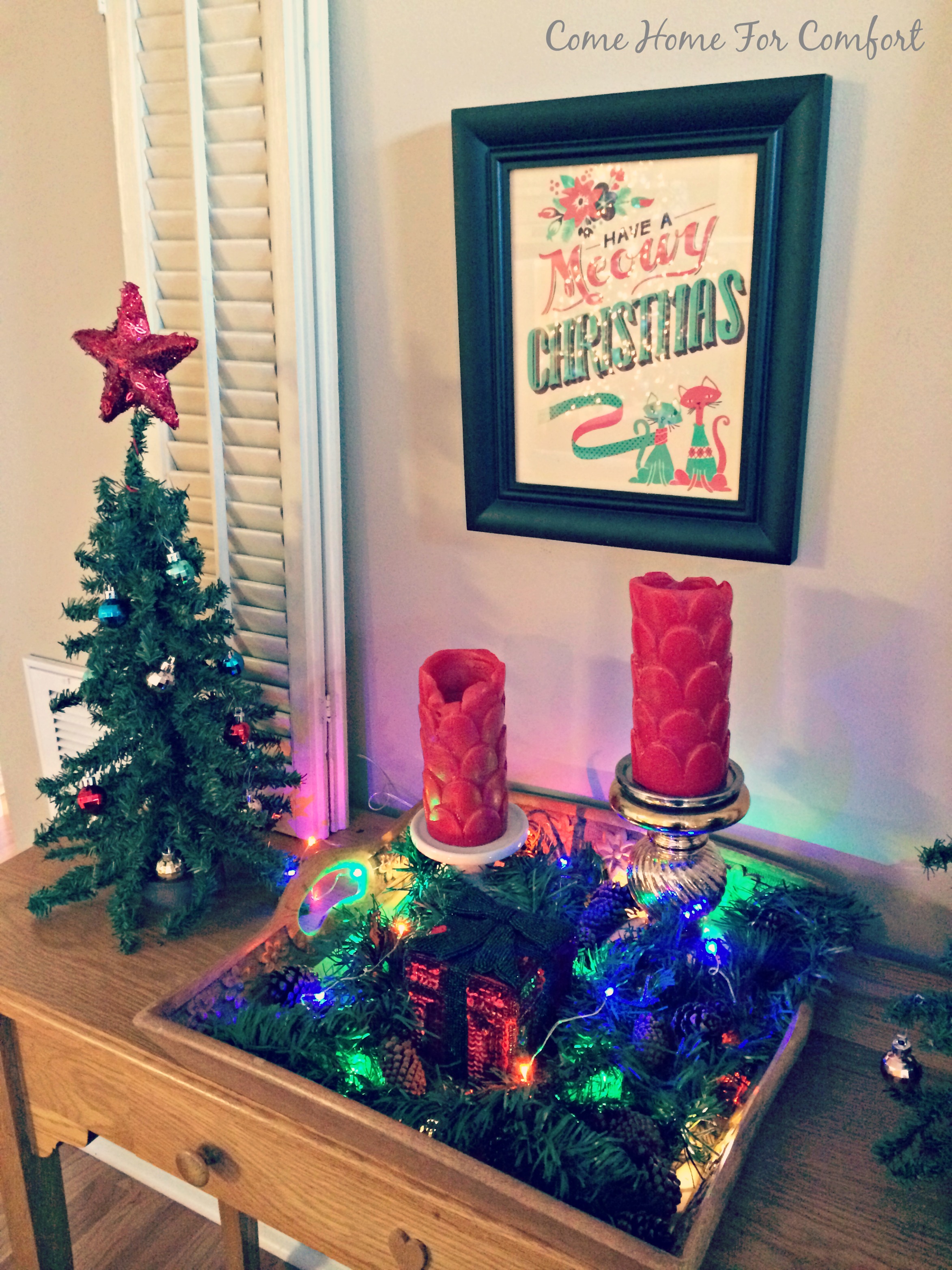 1. I love your wreath – so unique and different with the basket. I also am a big fan of your tree topper. Do your cats mess with your tree?? Mine drink the tree water, but that’s about it.