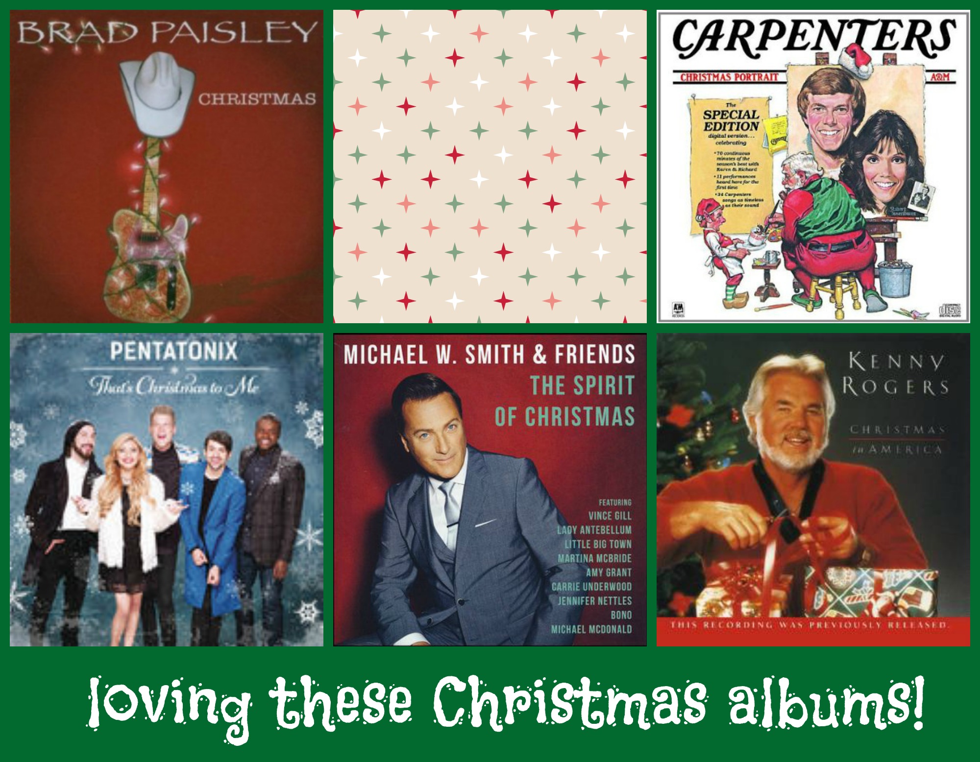 When I was growing up in the 1960s, my favorite album was Ernie Ford’s Christmas album. Several years ago a good friend found this album was now available on CD and she gave it to me for Christmas. And I LOVE the Carpenters as well as Brad Paisley. I am going to have to get that Pentatonix CD as I have heard several songs of theirs and enjoyed their styling.