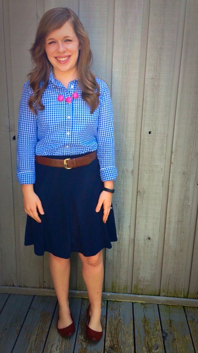 1. Well I have a pink gingham shirt that I will wear with jeans and PINK loafers today, Alli. Gingham seems to be the rage this year. Love your pretty outfit…like you I am ready for spring.
