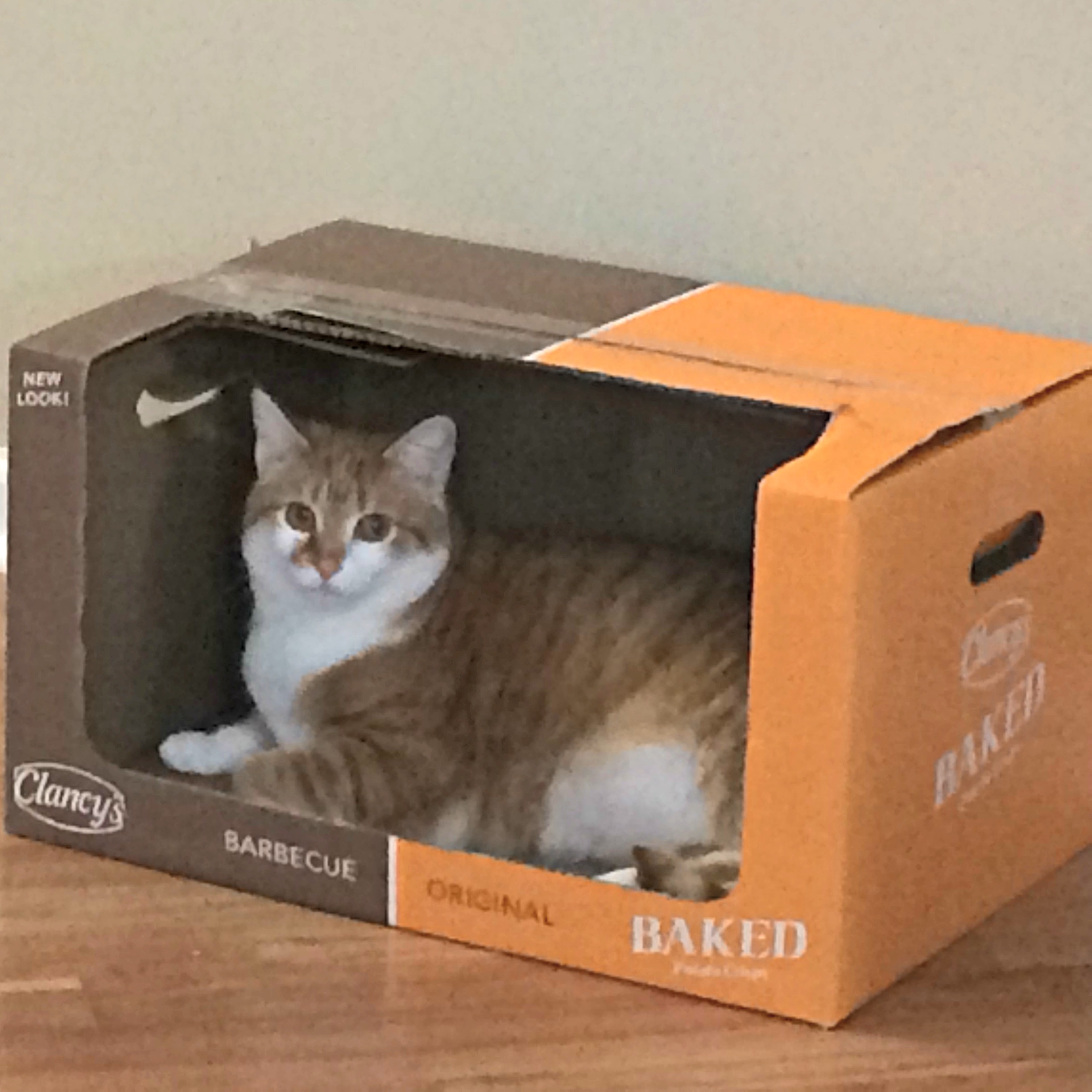 2// What is it about a kitty in a box? Peggy is loving this box I brought home from Aldi.