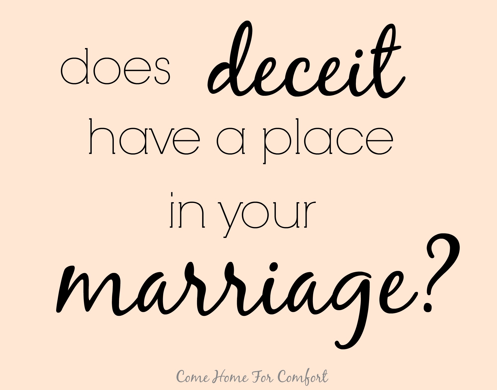 Witnessing these unhappy couples at work has definitely caused me to examine my own relationship. Does deceit have any place in my marriage? Am I tempted to tell my husband half the truth for whatever reason? If I am, why is this a problem?