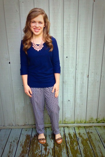 I’ve been searching for a pair of printed pants for months and after hitting the outlets last weekend, I finally found the perfect pair. Loft came through for me again with these super comfy navy pants! They basically feel like I’m wearing pajama pants so I’m all over that! Plus they were 60% off with an additional 20% so there was no question that they were coming home with me.
