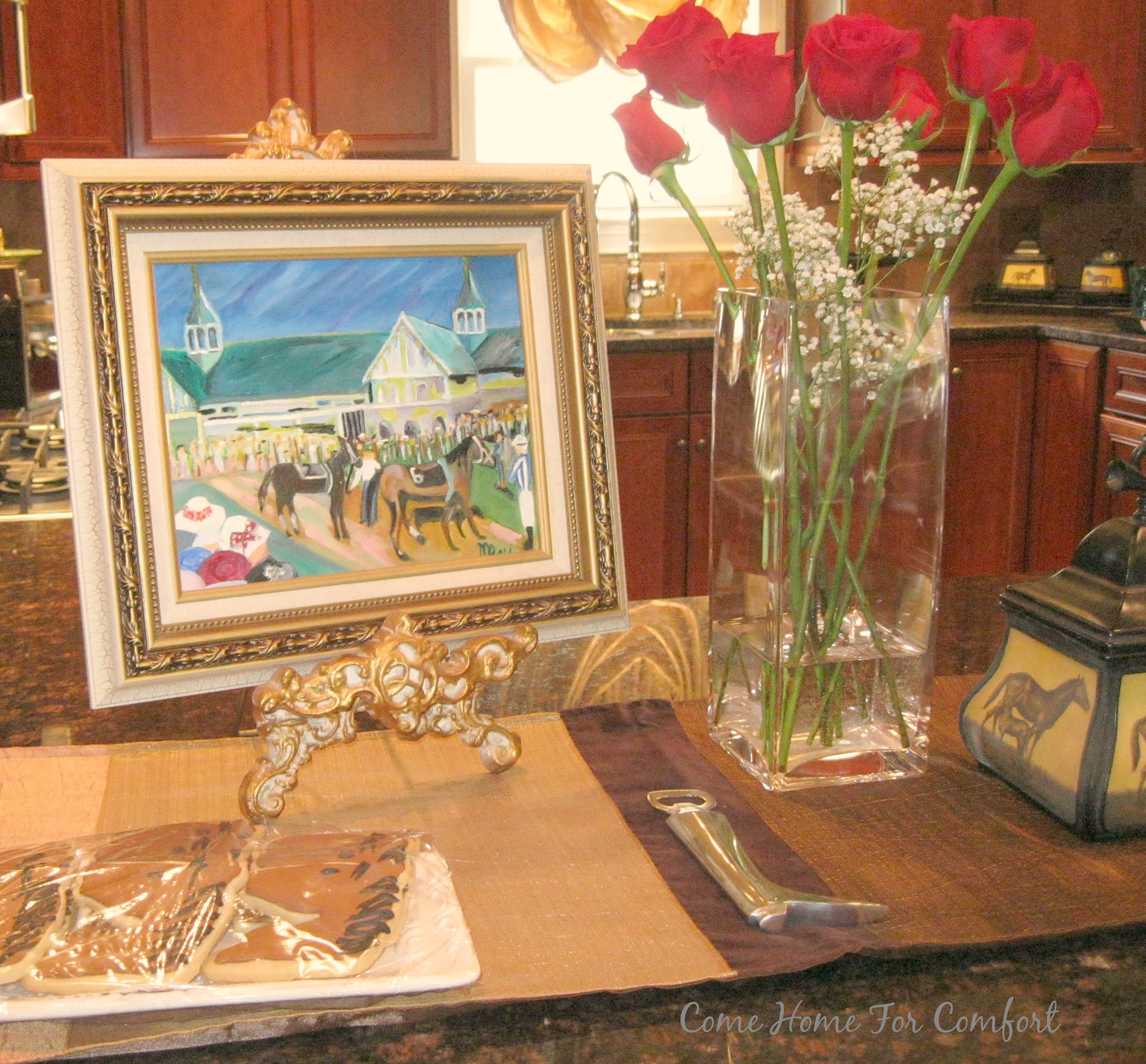 Of course, Derby Day isn’t complete without some red roses! My Nana brought her original painting of Churchill Downs to display along with the roses and snacks. A perfect day at the races, without any of the heat or crowds!