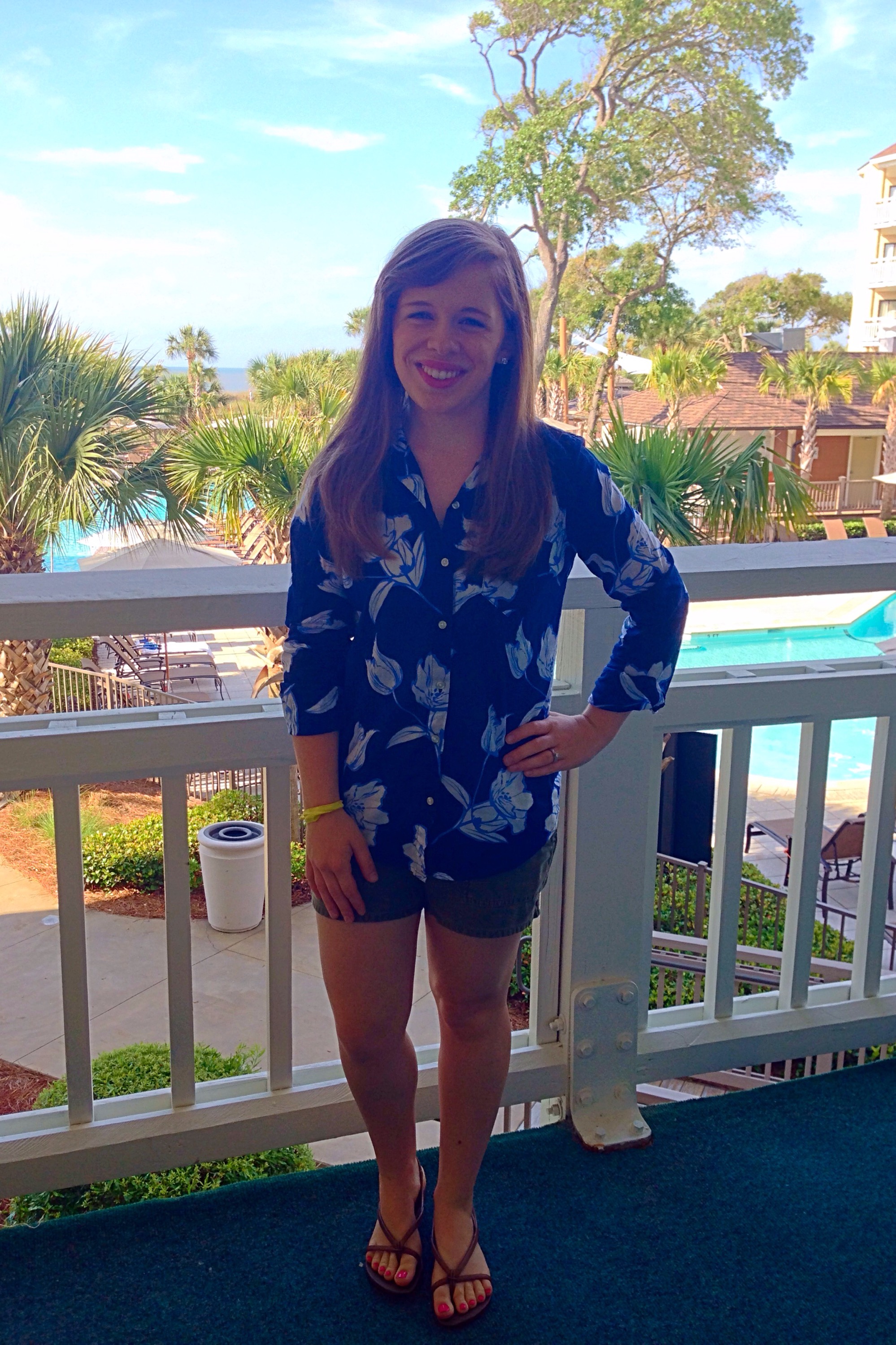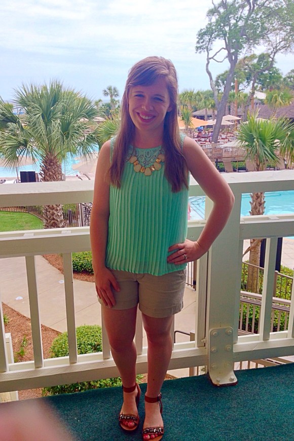 As a follow-up to my packing list post, I’m sharing some of the outfit combos I wore from what was in my suitcase. I found that I had just the right amount of clothes needed for my week at the beach and even had a couple leftover pieces that I didn’t need to wear. I didn’t get a picture of my outfits from every day we were on vacation, but some days were spent in a swimsuit or athletic clothes, so you’re not missing much! I apologize in advance for the weird lighting in some of these pictures – the sunlight made it hard to get good images!