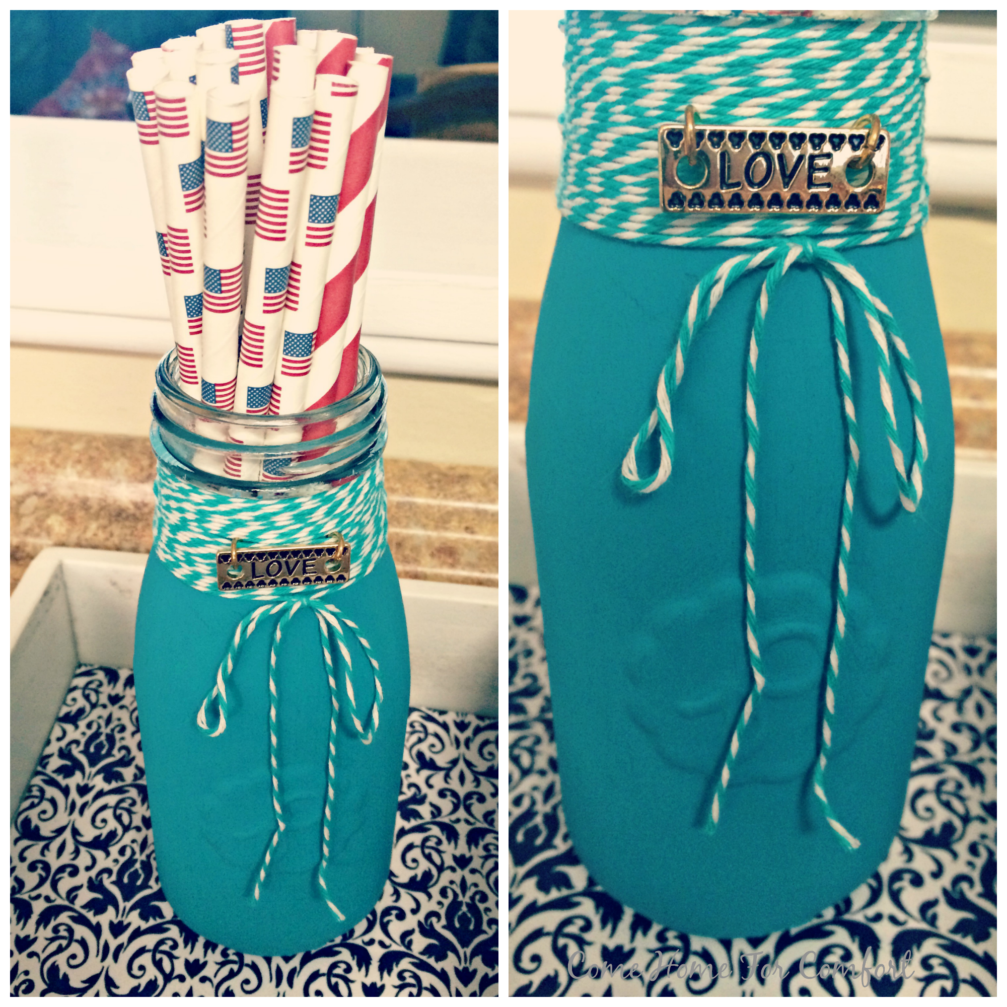 This morning I watched Jen’s shopping haul while I ate breakfast. She bought some paper straws and displayed them in a glass milk bottle – so cute! End of story? I had to stop at TJ Maxx and Burke’s Outlet after work! 🙂 I picked up several fun things at both stores, but I truly was in search of some paper straws. I knew they’d look cute in the milk bottle my MIL gave me recently. I ended up putting together a fun patriotic display for my breakfast bar!
