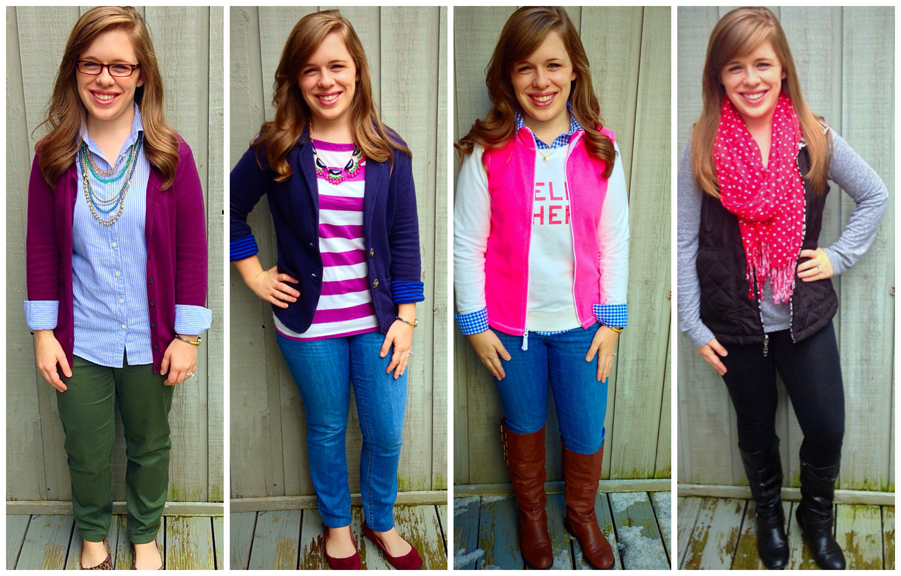 I’ve really enjoyed getting to share my outfits on Whitney’s blog for the past year! Thanks so much for reading and for your sweet comments! Below I’ve put together a few collages of most of the outfits I’ve shared with y’all.