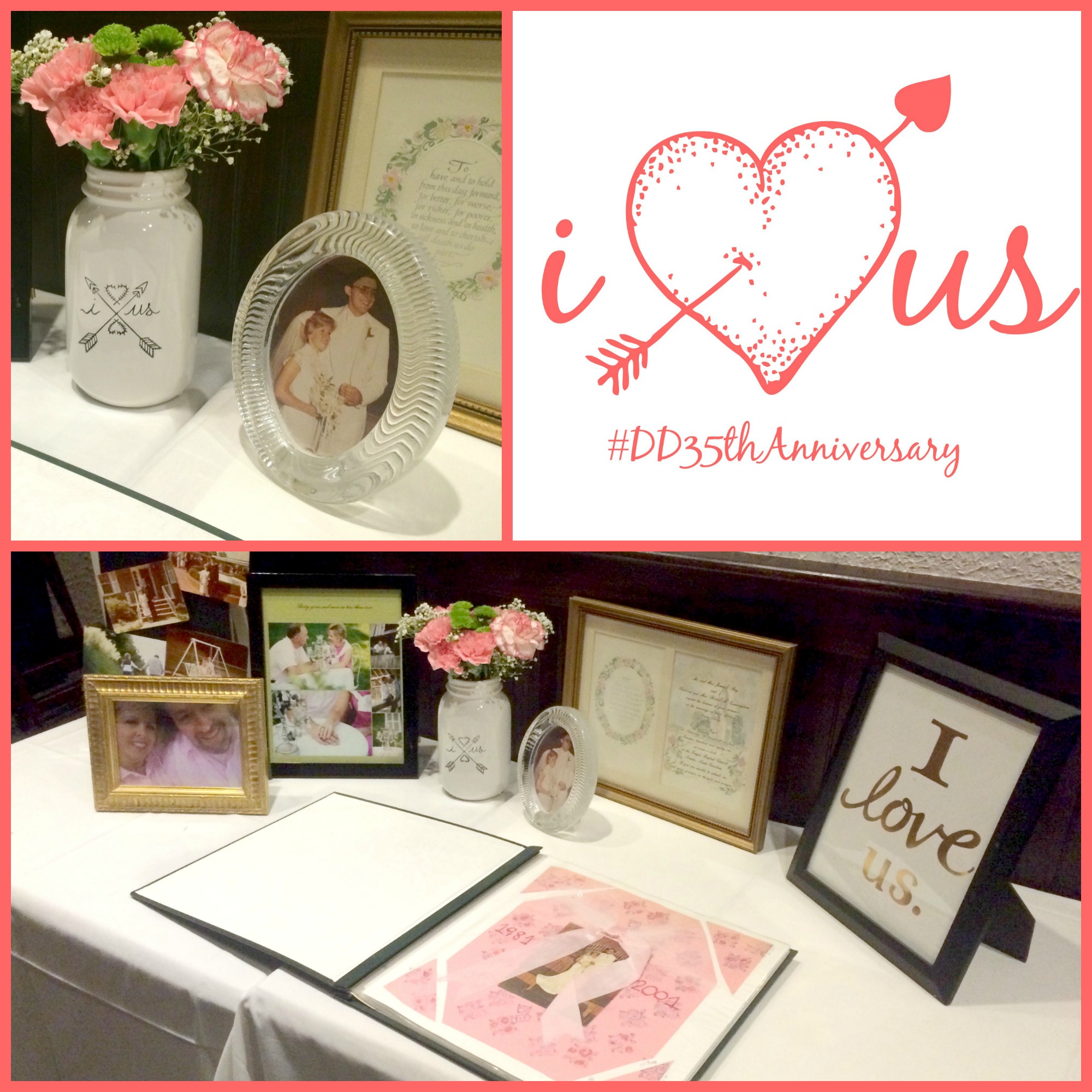 - Settled on a theme – we went with coral (the suggested gift for 35th anniversary) and the phrase “I love us,” which is special to our parents.