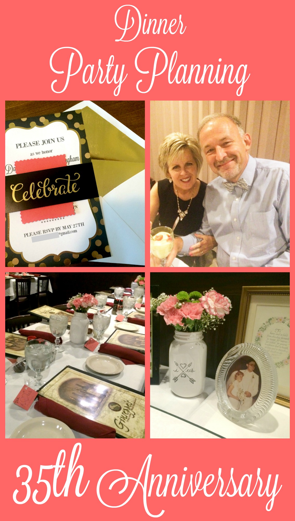 Last weekend my sister and I had the privilege of helping our parents celebrate their 35th anniversary. We had so much fun planning and hosting this event! Other than my wedding (which was pretty simple), this was the biggest event I’ve organized. Alli’s creativity and excellent taste was a perfect match for my love of spreadsheets and details. I thought it would be fun to share the party planning process with you, along with lots of pictures from the evening!