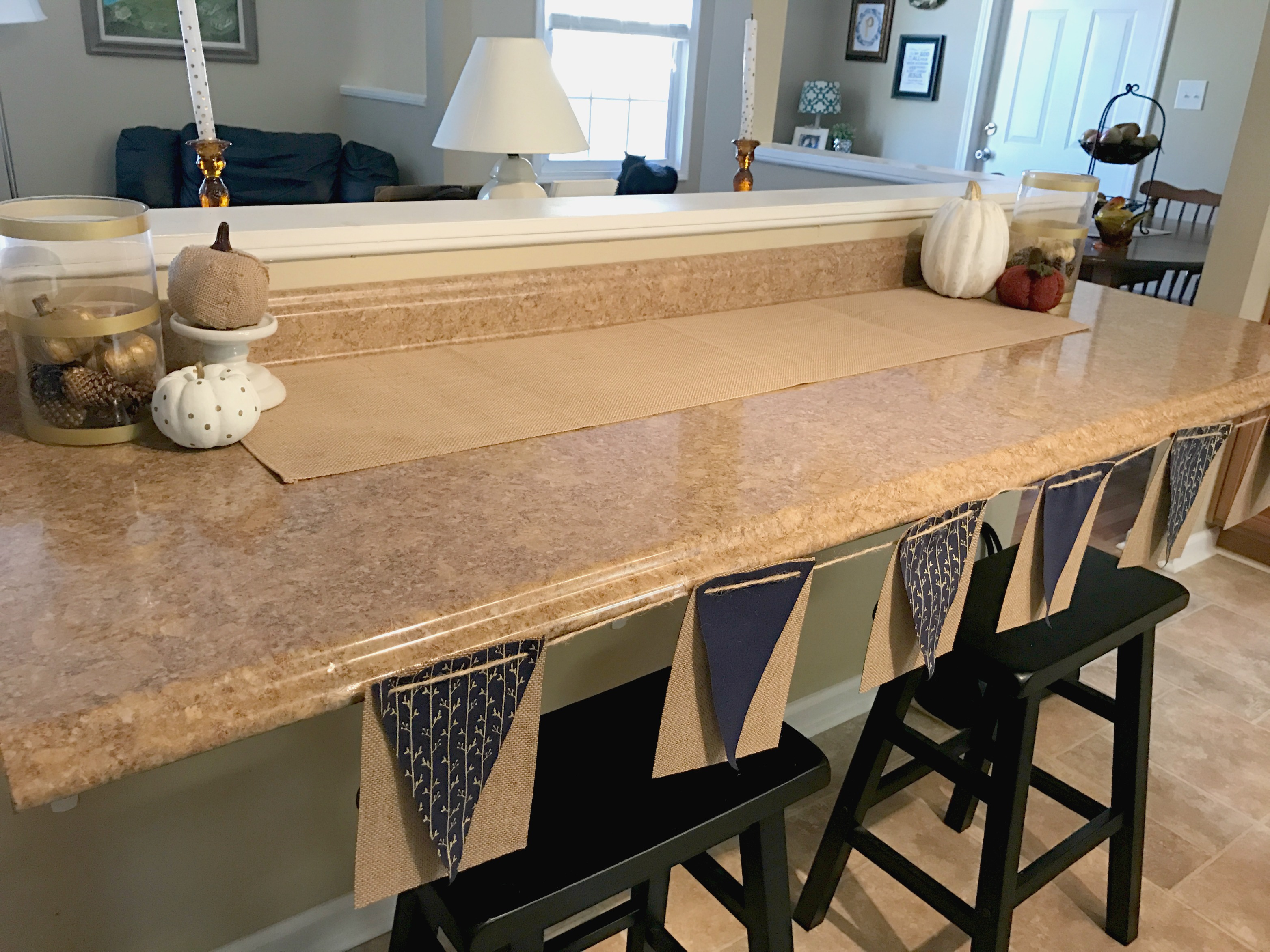 I wish I could leave that banner up all month, but we do sit at the counter every day. 🙂 If you’d like to see another look at my Thanksgiving table, watch the video below!