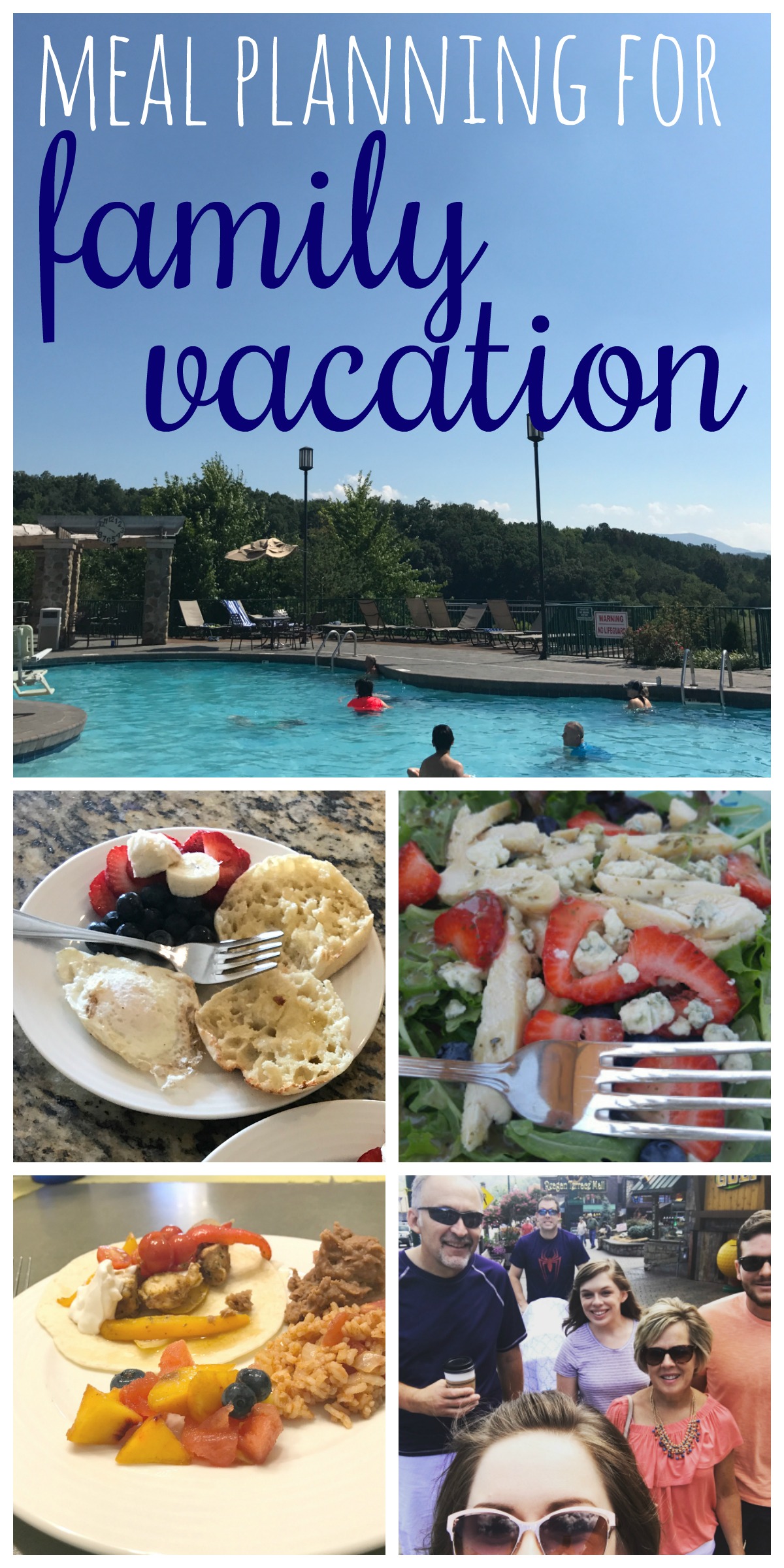 Meals can easily be one of the biggest expenses during vacation. Last month my side of the family (six adults and two babies) met up in Gatlinburg for two full days, and we didn’t spend a DIME on eating out! We stayed in a condo with a full kitchen, so my mom, sister and I teamed up to provide meals for our stay. It was so nice to eat on our own schedule without fighting crowds or worrying about how much it was going to cost. We were able to talk around the table while the kids played or napped. It was so nice!
