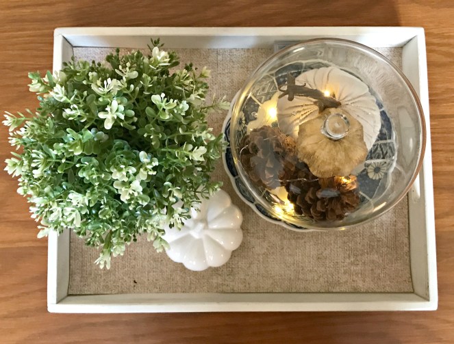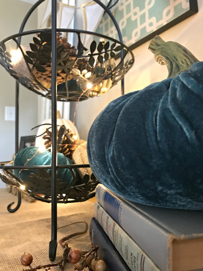 Halloween decor is on tap for me soon. I’ve been under the weather a bit with a cold/allergy thing, and I didn’t want to dig up any more dust than necessary. Haha! 🙂 Those velvet pumpkins caught my eye at Target, so they had to come home. Velvet is so cozy!