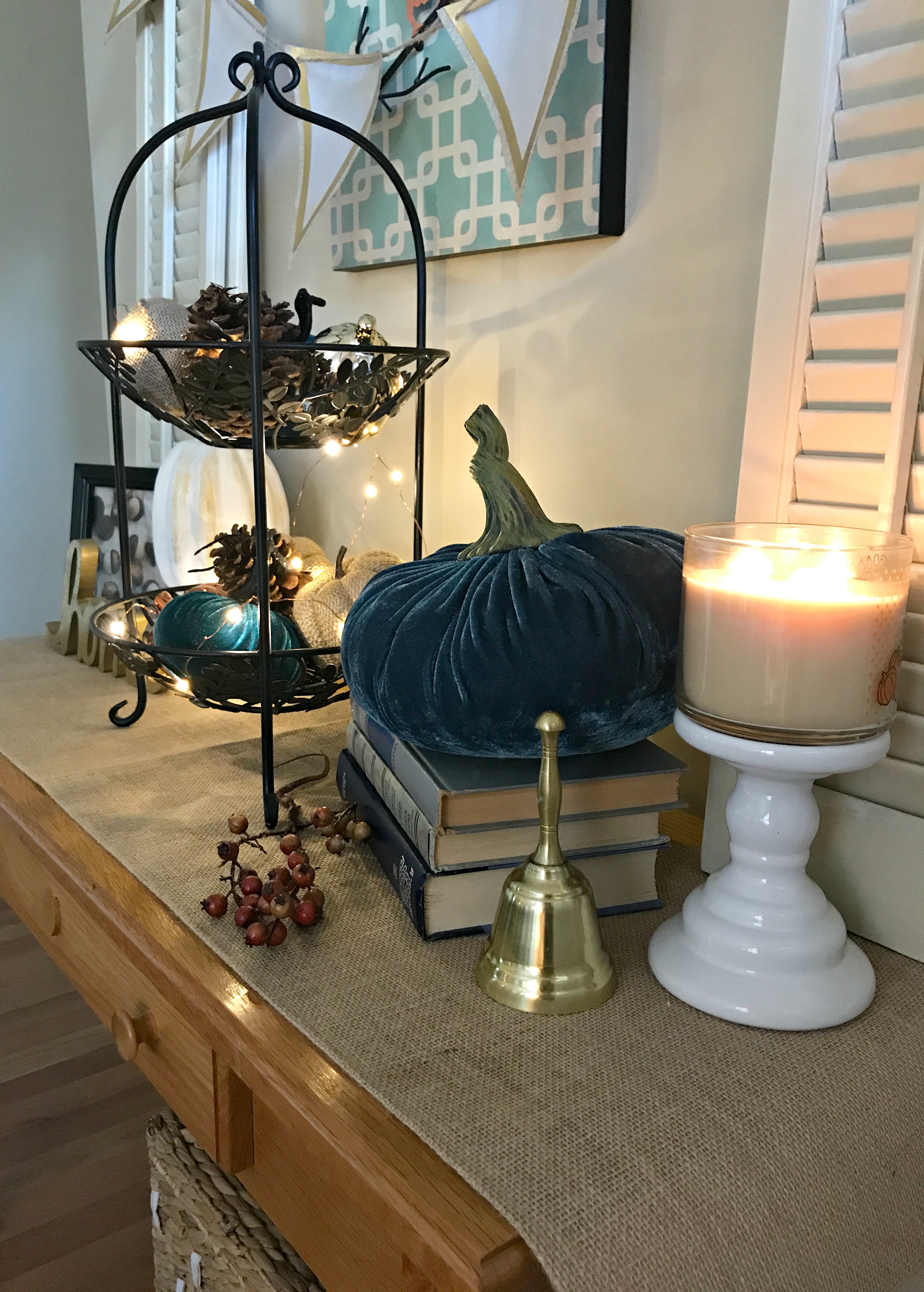 So cozy! I think you might love pumpkins just as much as me, and I also bought a teal pumpkin this weekend at Target!! And I got one in purple and one in black (as Halloween’s a bit spooky). They will be going up next month, when I decorate for Halloween. Right now, my decor it’s more natural toned. It’s soothing to have greens, browns, etc. I love your twinkle lights! There were some kind of lights at Target in Bullseye’s Playground, and I’m sort of wishing I’d have picked them up, too. I want ALL the fall things, so it’s important to limit myself. 🙂 Oh, and I do agree that tastes change over the years, so it’s fun to look back on decor! (Some clothing choices I made years ago now have me shaking my head. Haha!)