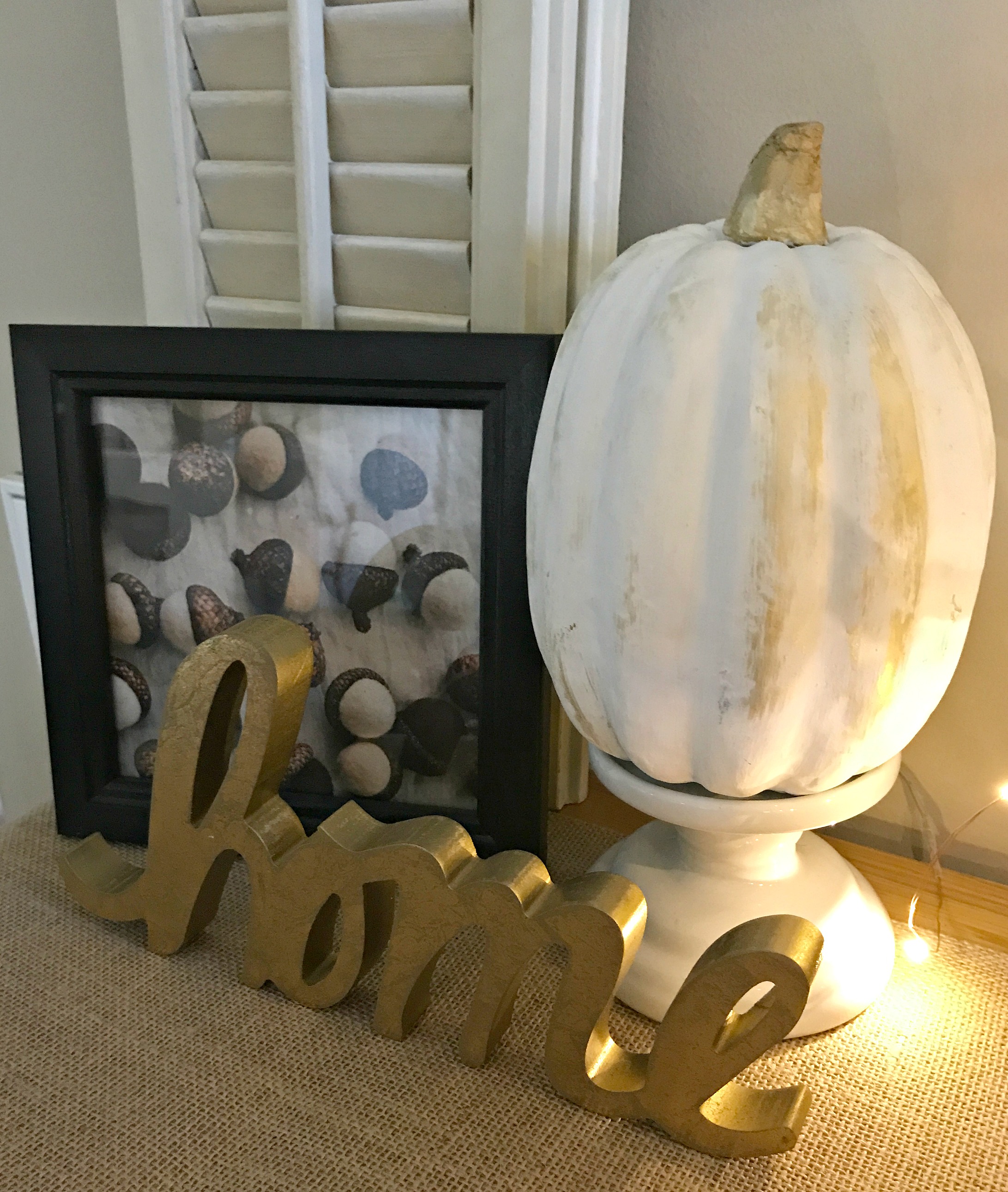 I love the velvet pumpkins that Target has this year! I think the black ones are really pretty and would be great in the right color scheme. I set out my Halloween things this weekend – not too many, but a few to make it a little more festive!