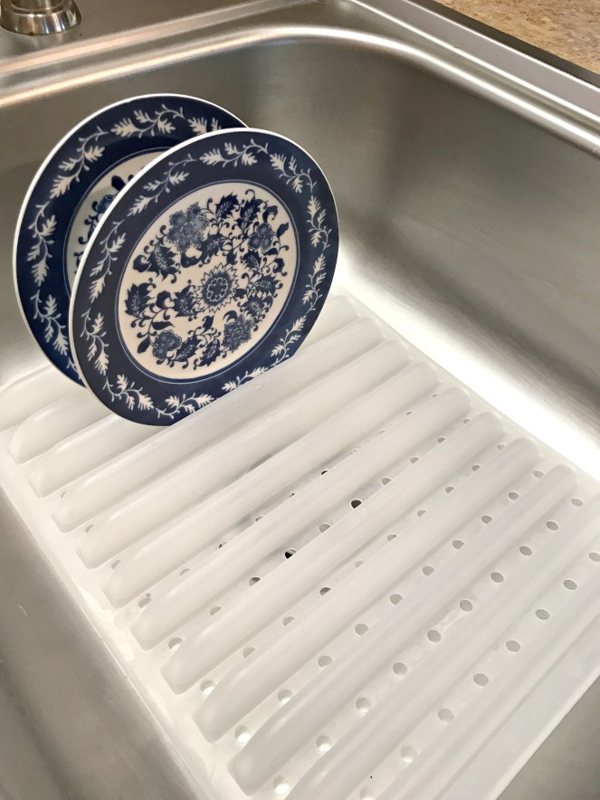 After shopping for a dish rack for months without finding one under $9, I was so happy to find this one at Aldi. It’s perfect for someone who has a dishwasher and doesn’t usually wash large amounts of dishes at a time. In the picture above, I put some dessert plates in the rack to show you how it works.