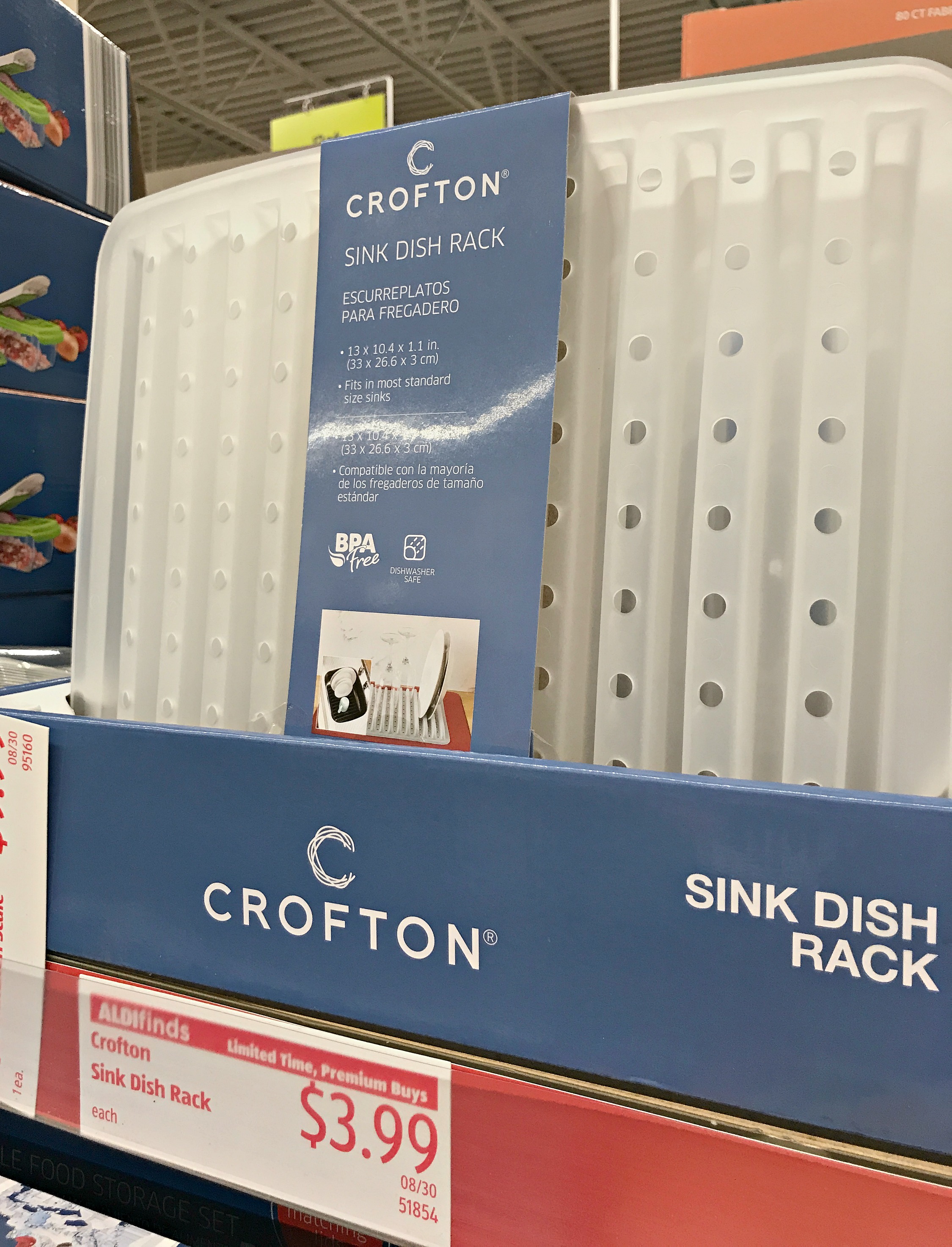 After shopping for a dish rack for months without finding one under $9, I was so happy to find this one at Aldi. It’s perfect for someone who has a dishwasher and doesn’t usually wash large amounts of dishes at a time. In the picture above, I put some dessert plates in the rack to show you how it works.