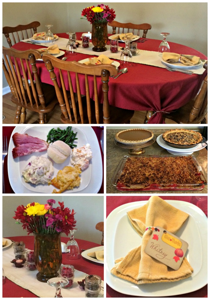 Your table settings are so lovely! 🙂 My favorite foods are stuffing, our family recipe cranberry fluff salad and the pumpkin pie. It’s a tie, as they are all so yummy! We probably are going to my cousin’s for Turkey Day this year. He bought a house, and it’s going to be a housewarming sort of holiday. Hopefully, we can fit everyone in!