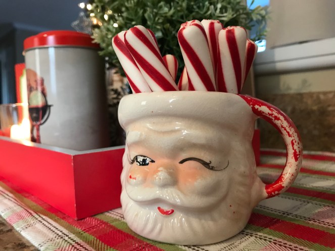 That was a BUY on that old Santa mug!! Love it and how you prettied up the tray!