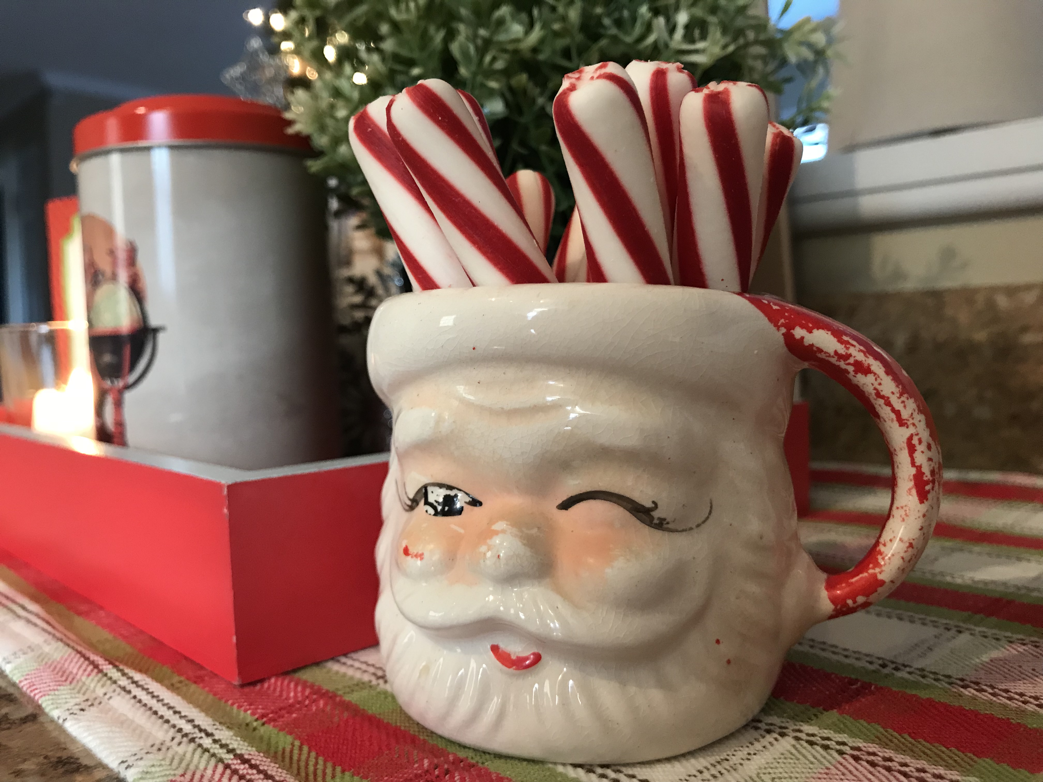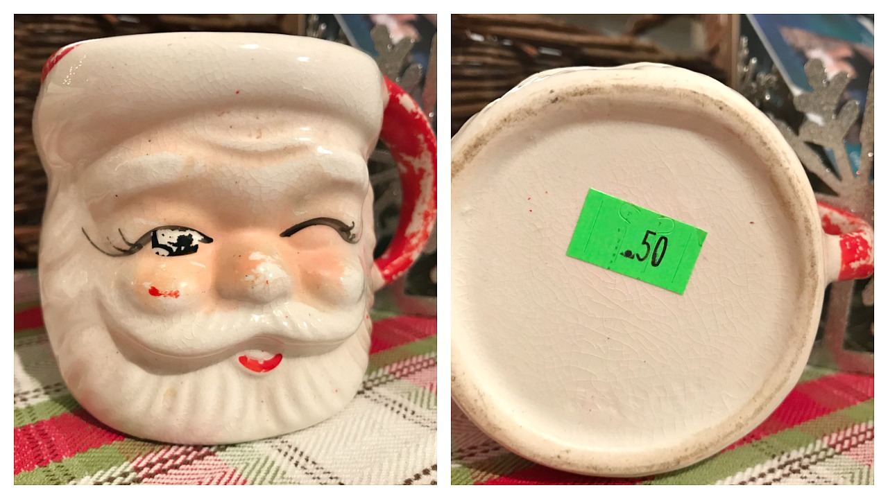 That was a BUY on that old Santa mug!! Love it and how you prettied up the tray!