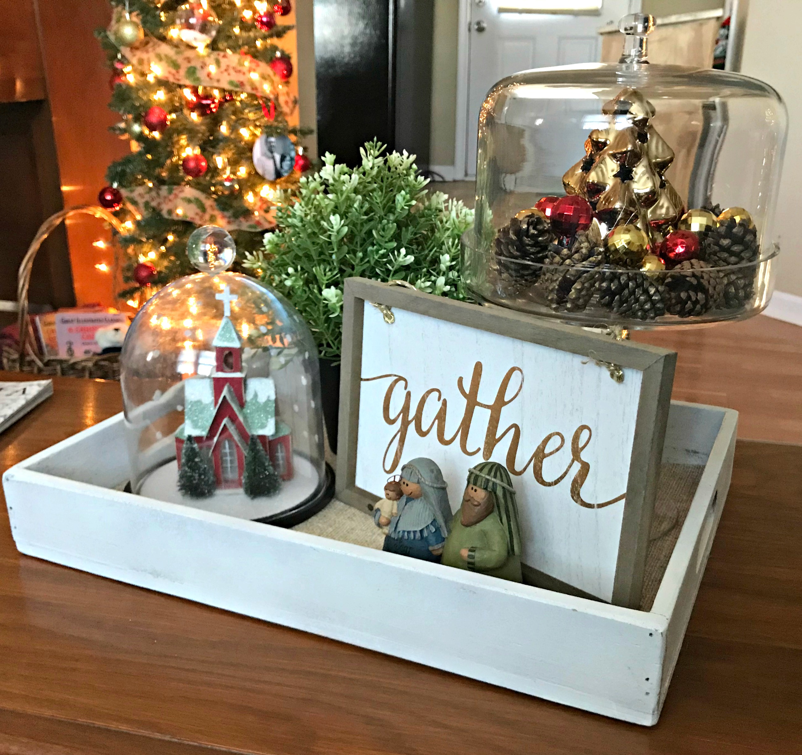 I love your bottle brush trees on your tiered stands and your pretty coffee table display. My kids would be too hard on a pretty tray like that right now so I’m saving that idea away for when my kids are older.