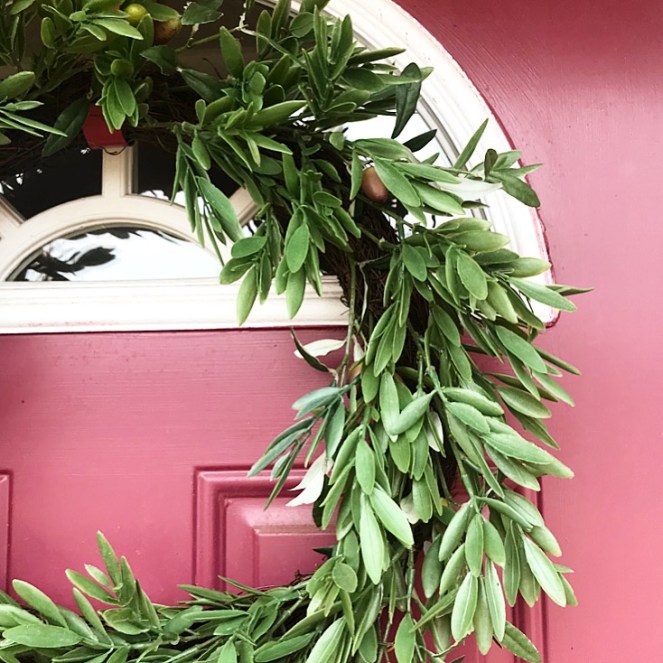 You of ALL people should have an Olive wreath! 🙂 I love pinecones and twinkle lights for winter – so calm and simple after all the festive Christmas decor.
