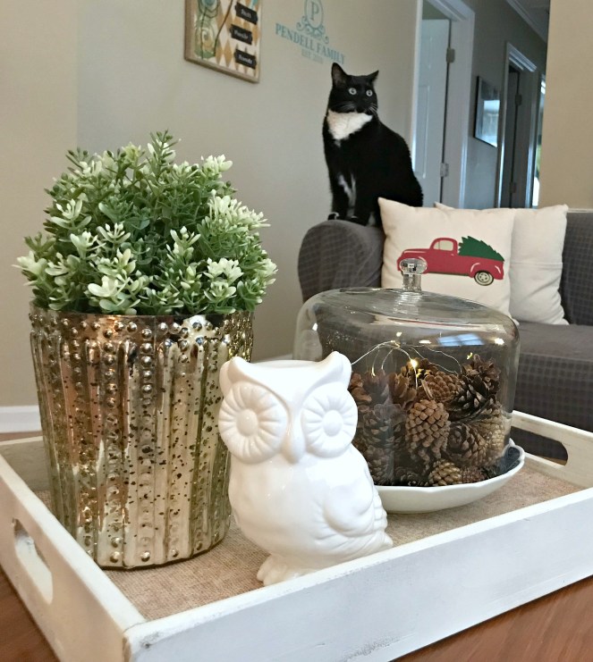 Come into the house and you’ll find lots of cozy layers, twinkle lights…and probably a cat or two. 🙂
