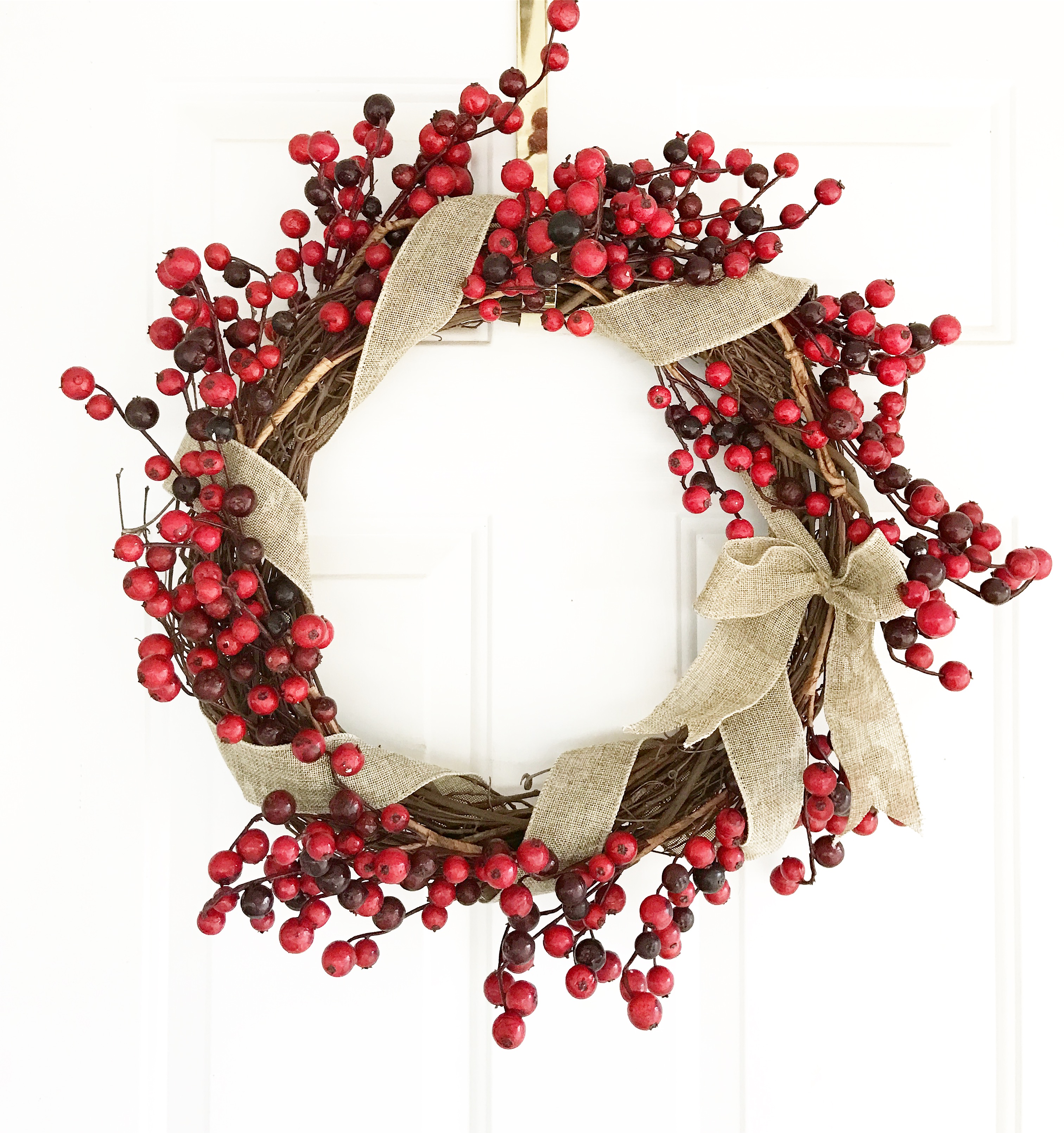 I picked up a new Olive Wreath at Hobby Lobby for the front door, but the side door is decorated with my go-to wreath for January and February. It’s the same one I use for Christmas with burlap ribbon instead of plaid!