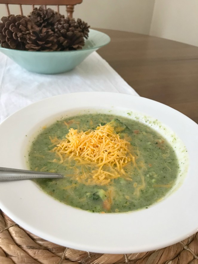I took my time with all three of our meals and enjoyed preparing things we don’t normally eat during a busy day. At lunch I made soup to order – Chicken Sausage and Potato Chowder for Paul, Broccoli Cheddar Soup for me!