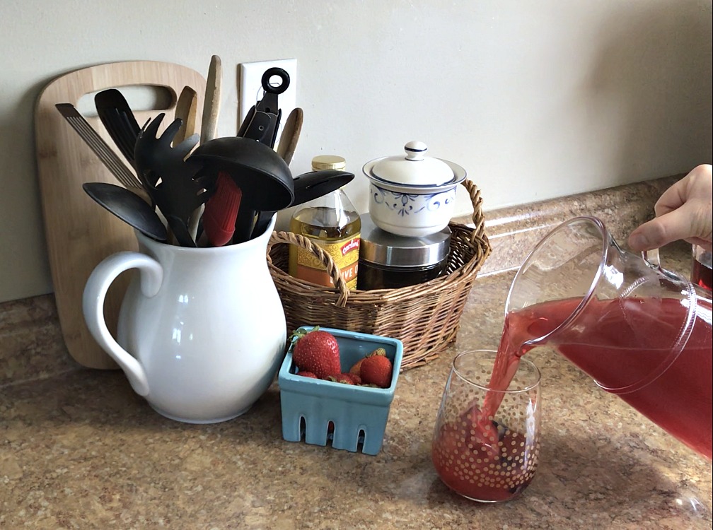 It doesn’t get any easier than mixing water with some powdered drink mix, does it? I know this isn’t the most upscale beverage, but it’s a great option to have on hand! I love being able to offer my guests something other than water without having to stock my fridge full of beverages that might not be consumed.