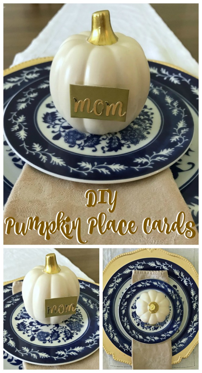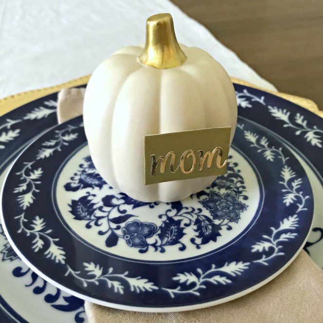 When I saw these cream and gold ceramic pumpkins at Dollar Tree several weeks ago, I knew they would be a perfect addition to a fall table setting!