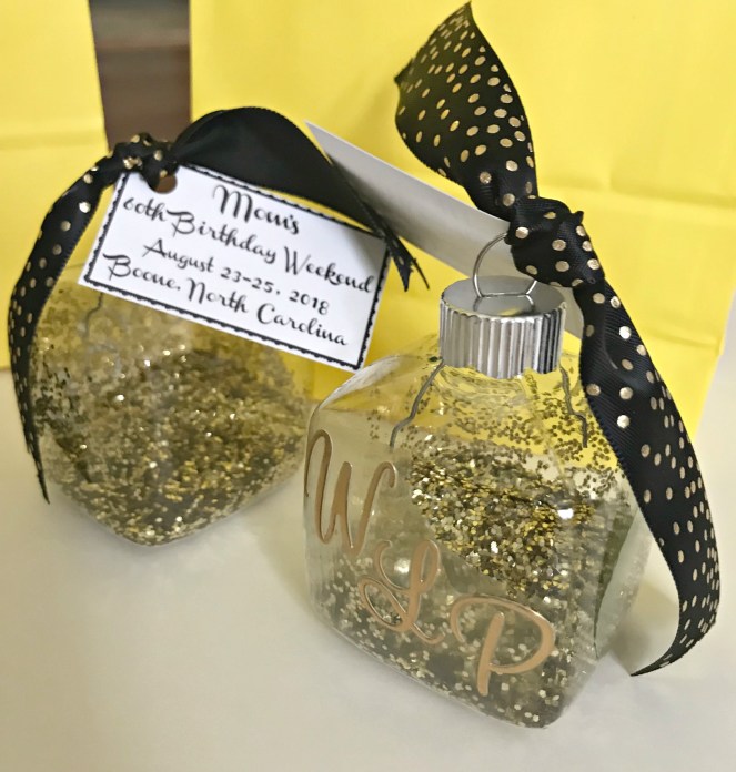When my sister and I started planning our girls’ weekend in celebration of my Mom’s 60th birthday, I knew I wanted to make some kind of party favor to commemorate the weekend. I hit up Pinterest but had very little luck finding anything other than tacky novelties or things having to do with wine (we’re all non drinkers who try not to be tacky!). 🙂