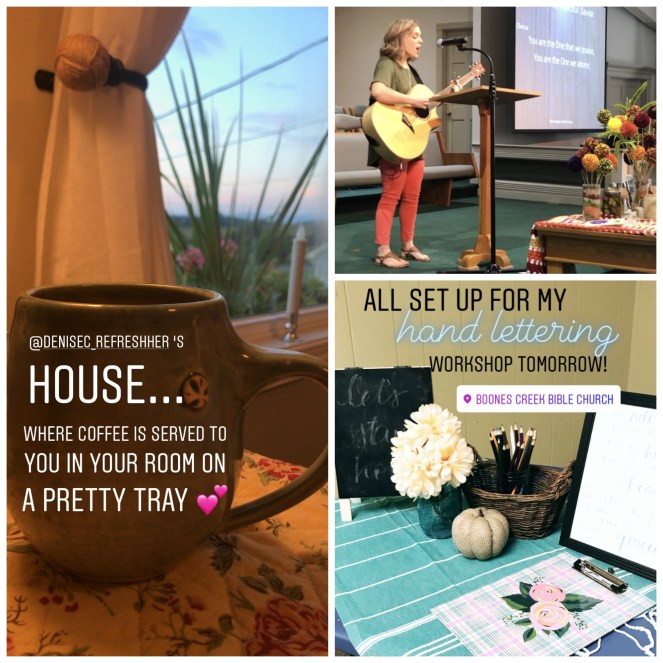 There’s something special about worshiping with your family! I loved seeing my sister lead worship (below) with her guitar – she’s usually at the piano. Staying at my parents’ house is always a treat! Look at that view!