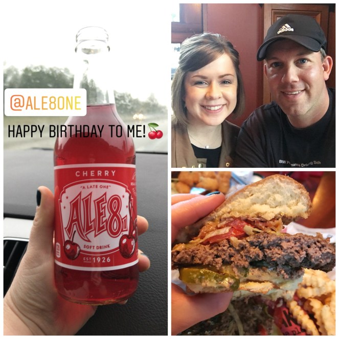 While in Kentucky, I was happy to find the new Cherry Ale 8 at their local Walmart. I’ve been putting grenadine in my Ale 8 for years and I’m glad someone finally realized how good it is! 🙂 I enjoyed a delicious birthday burger at Drake’s in Lexington before we headed to Nana and Papa’s for the night!