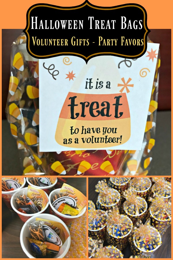 These little Halloween treat bags are so cute – they’re perfect as a little thank you gift or as a party favor! I made mine for the adults who are volunteering this week at an event where I work, but they would be great to say thank you to anyone this time of year.