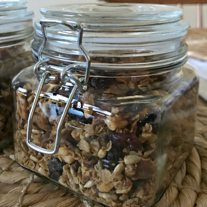 Earlier this fall I discovered the Maple Walnut Granola recipe from Victoria magazine. It is delicious and very simple to make! Using the “something to eat, something to keep” hostess gift method I learned from Amy Hannon, I put this hostess gift together: