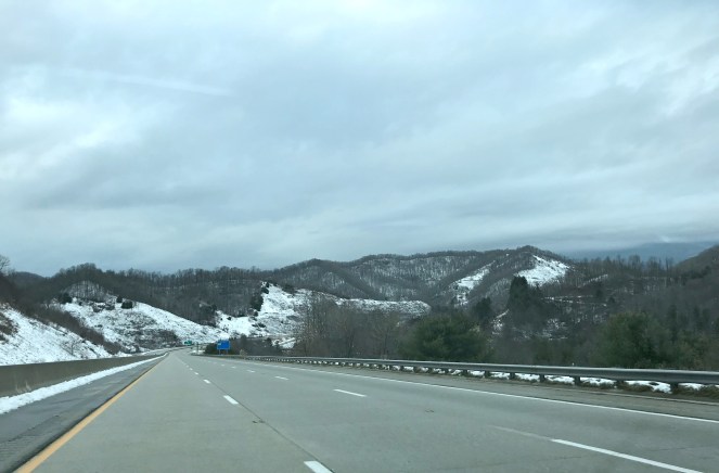 On Sunday morning we were glad to hear our pastor preach (after two weeks off due to snow and the Christmas concert). After church, we loaded up the car and headed across the beautiful snowy mountains to Tennessee!