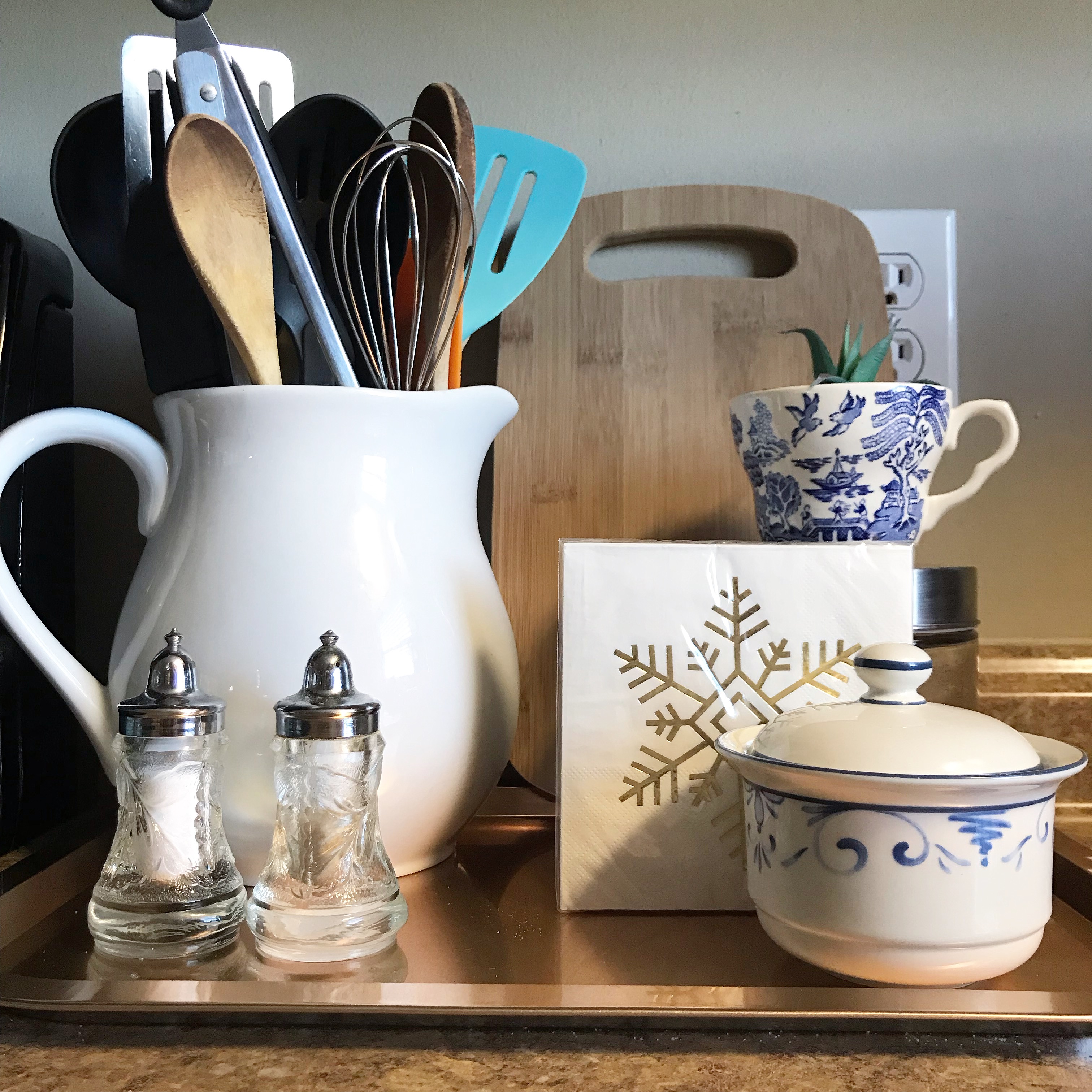 When you come in from work, the store, church or anywhere else, you usually have something in your hand. Most of the time, those things end up on the kitchen counters! Whether it’s mail, your coffee cup, groceries or a stack of Bibles and journals, make yourself put it all away immediately. This is where that mantra comes in handy, “Don’t put it down, put it away.”