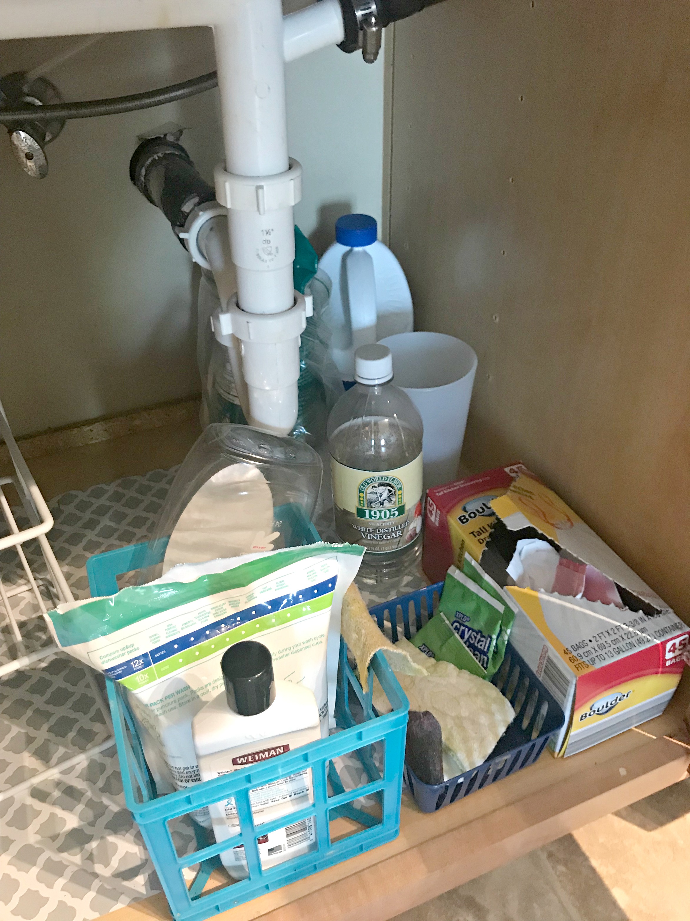 The cabinet under your kitchen sink is truly prime real estate in your kitchen! Think about how often you stand near or in front of that cabinet – you want the things in there to be easily accessible.