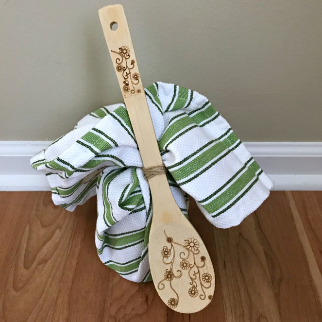 3. I love to receive a dish towel…even by itself as a Happy! It is something we all can use. Add granola and a cute spoon and that is perfect. I am finiding lots of cute things at Dollar General. I picked up a cute lamp there that I plan to post on my Friday Five tomorrow. It was only $10 and a stunner.