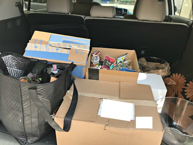 5. I boxed up the leftover items and got them out of the house! Trash went into the dumpster and donations went into my car.