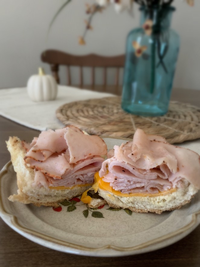 We had lunch at Be Our Guest this time around, and I enjoyed my meal so much that I came home and immediately tried to recreate it! It was a simple carved turkey sandwich, but it was delicious. I struggle to find simple, yet delicious things for lunch on the days we eat at home and this is perfect for those days.