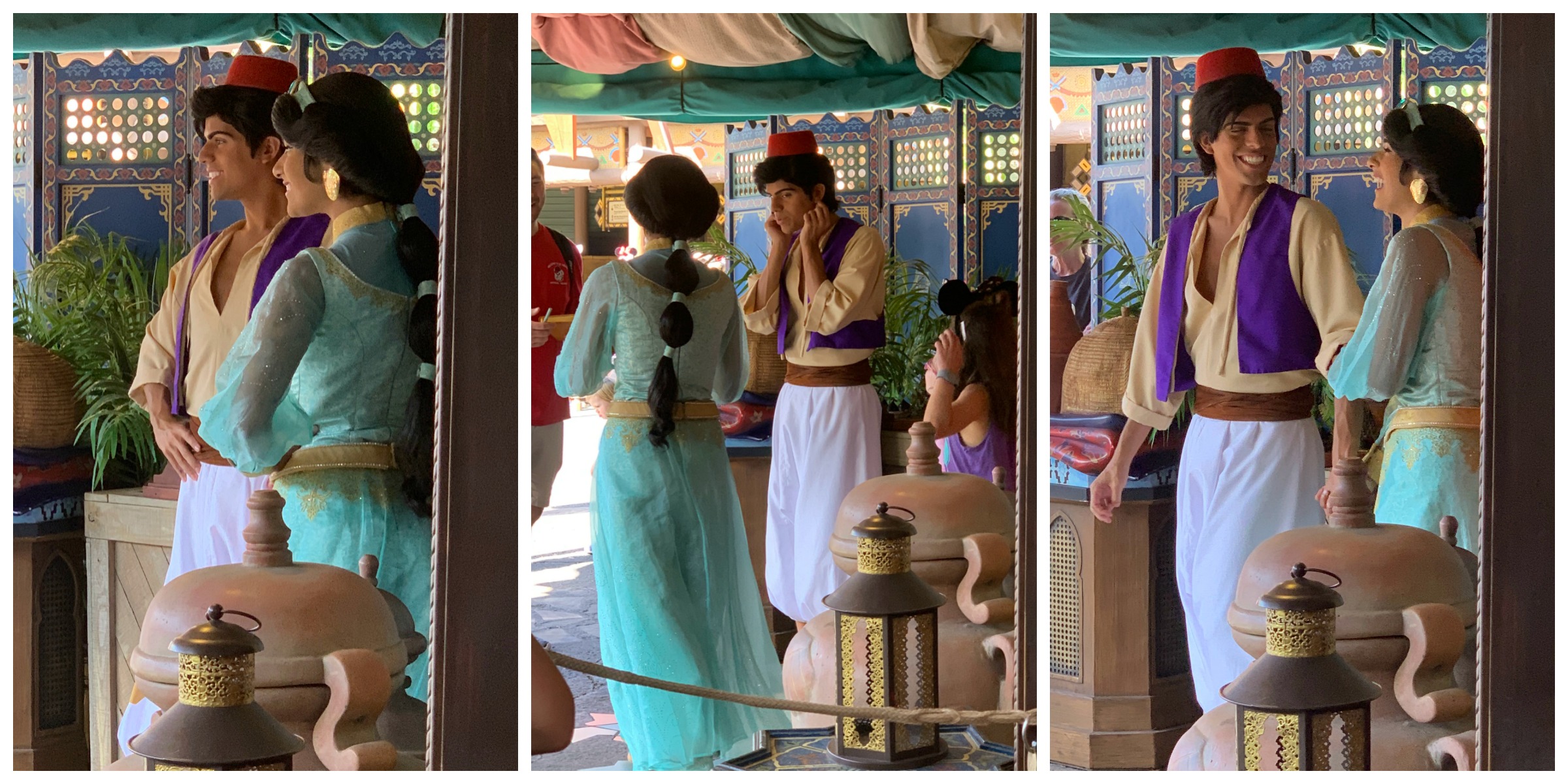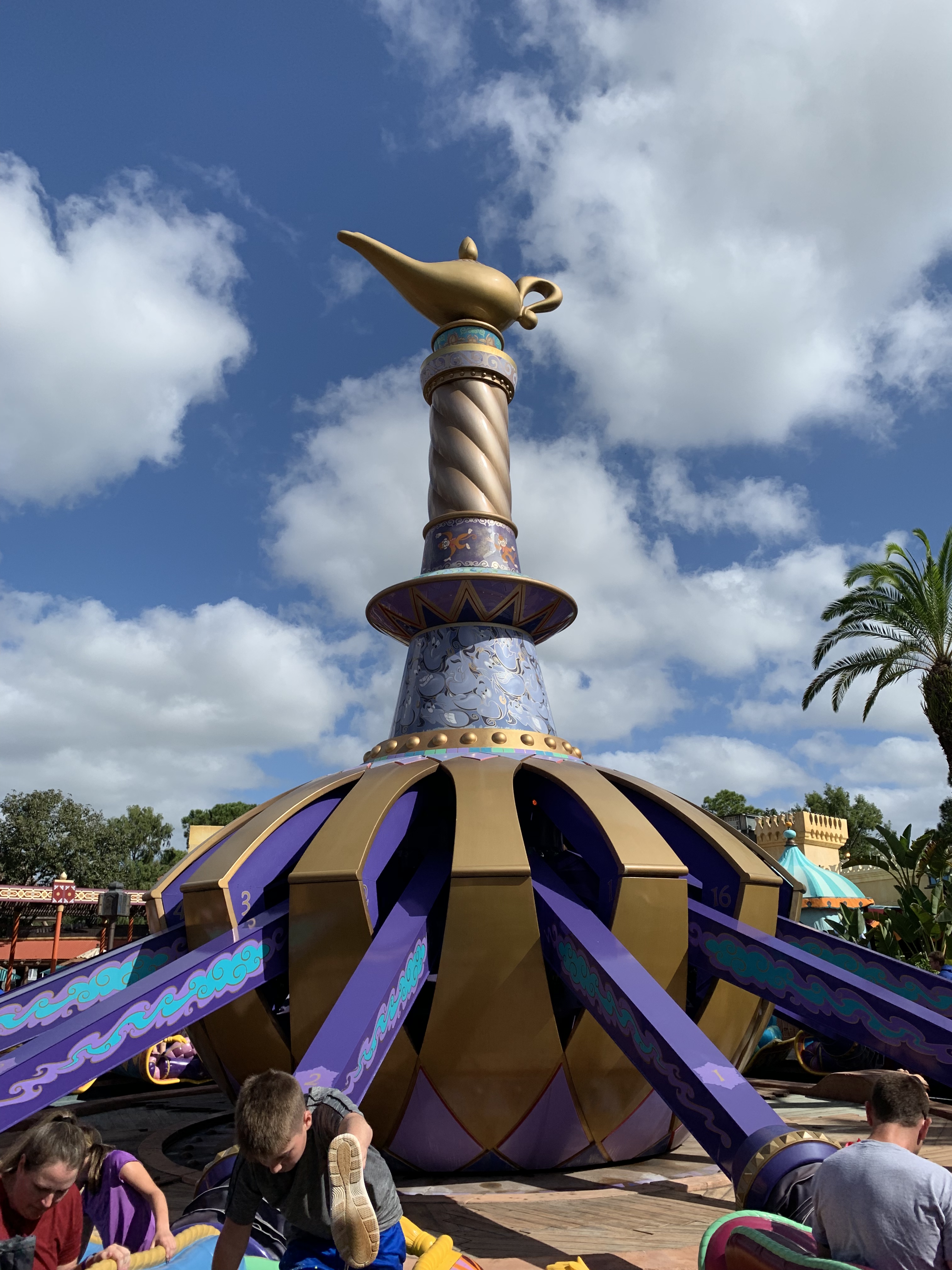 From there we grabbed a ride on the Magic Carpets of Aladdin, which I am not ashamed to admit was my favorite ride of the whole trip! We rode it again on our last night, in the dark after the fireworks. So much fun!
