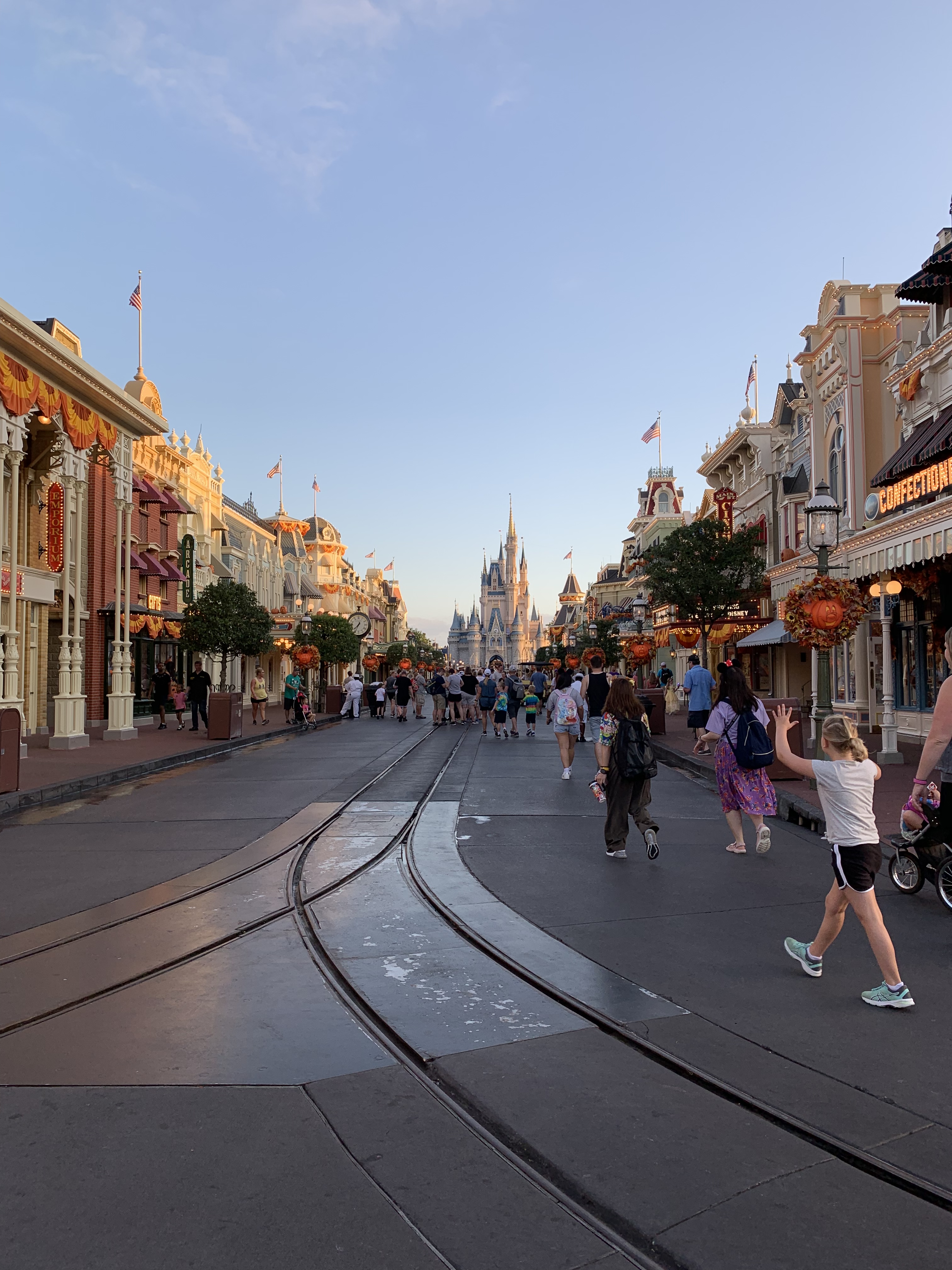 Because we were staying on Disney property, we were able to take advantage of Extra Magic Hours and enjoy the parks before they are officially open. I snapped this incredible view of the train station at 7:30 AM!