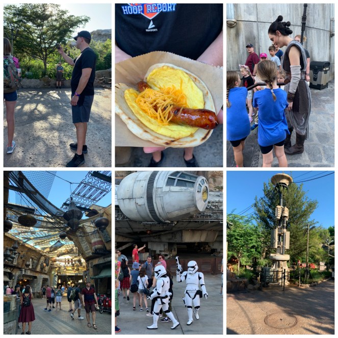 On the way to Galaxy’s Edge, we enjoyed the Hollywood theming and the lighthearted music that’s played on Hollywood and Sunset Blvd. It wasn’t too hot yet, with a nice morning breeze.